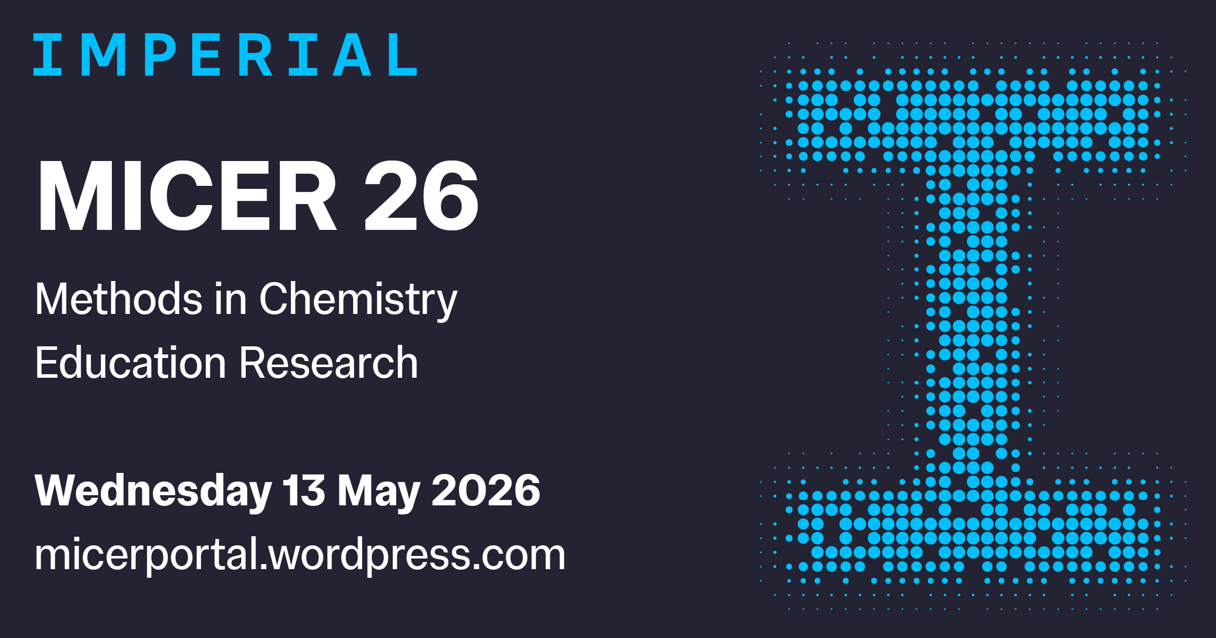 We are delighted to announce that Imperial College London will host MICER 26 – Methods in Chemistry Education Research on Wednesday 13 May 2026.