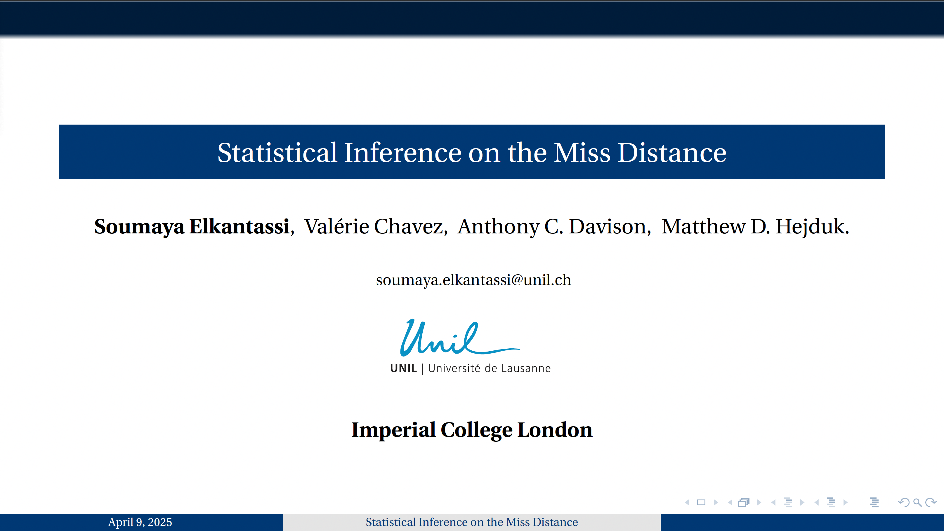 [11/04/25] Dr. Soumaya Elkantassi from the Department of Operation of the University of Lausanne in Switzerland visited our group over Tuesday April 8-Friday April 11 for discussions in the general areas of probability, statistics and stochastic processes.