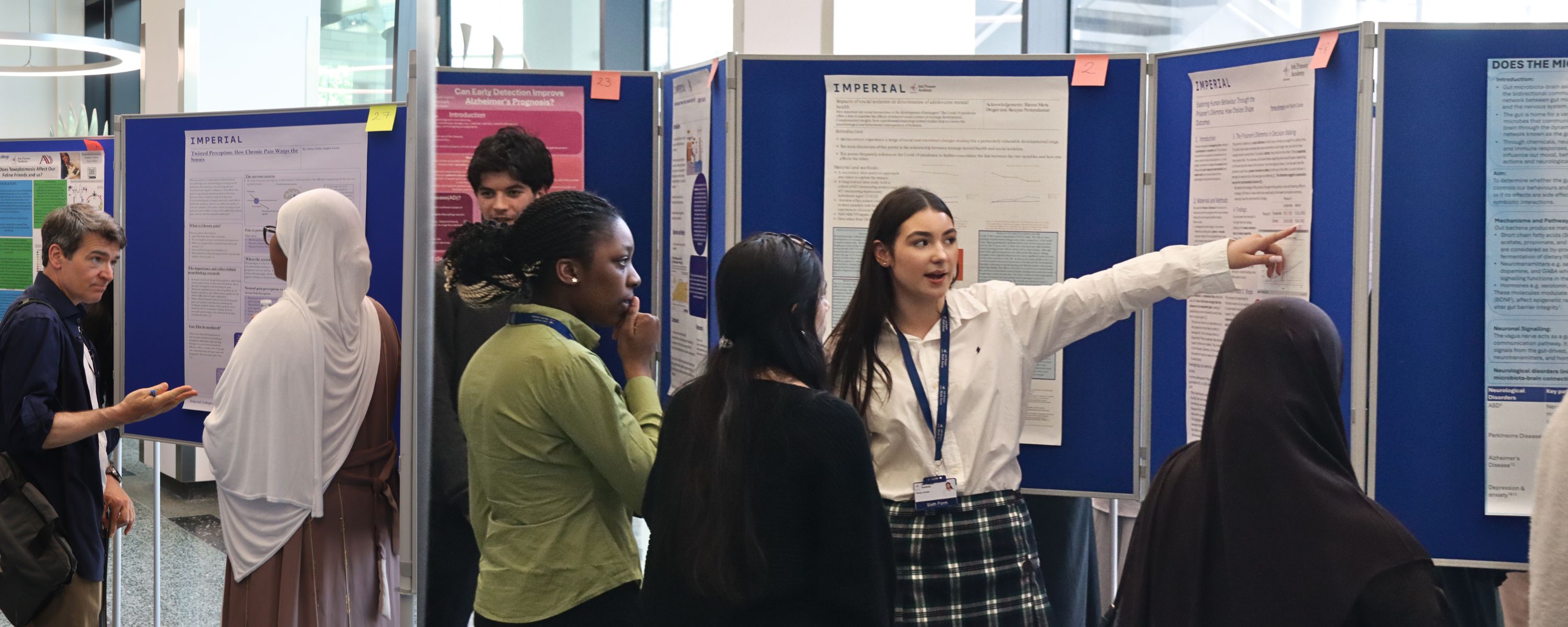 - Scientific posters: with expert guidance from the team of Imperial researchers, students create a scientific poster on their chosen topic, to be displayed at an in-person event. Previous poster sessions have garnered support from corporate sponsors like Merck and Proteintech, offering special prizes.