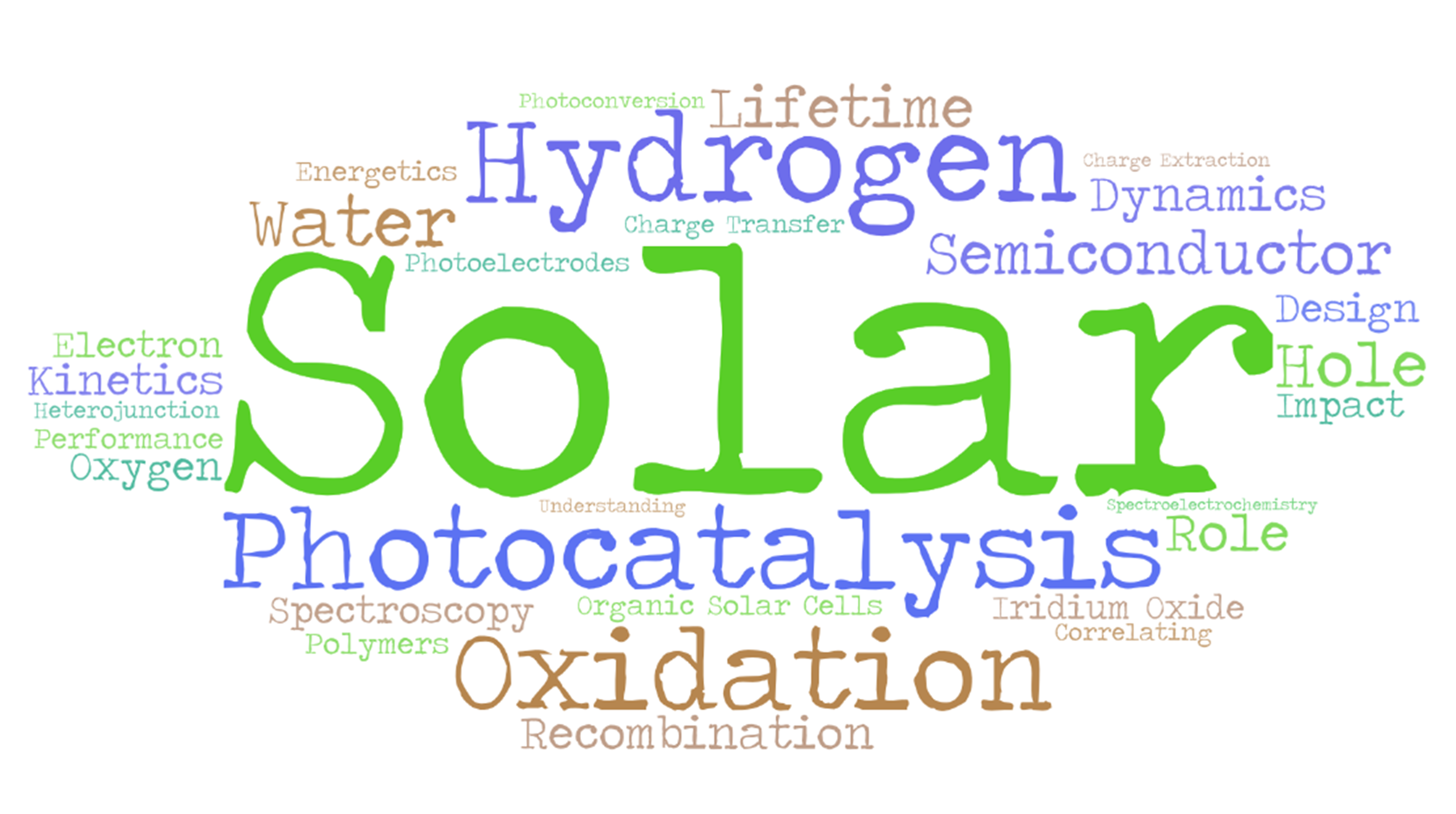 We undertake fundamental scientific studies of new materials and device concepts, aiming to elucidate design principles which enable technological development. Our research is based around using transient laser spectroscopies to undertake photochemical studies of light driven electron and energy transfer reactions. Such studies are undertaken in parallel with device development and functional characterisation, employing a wide range of molecular, polymeric and inorganic materials. Control of materials structure on the nanometer length scale is often essential for efficient utilisation of solar energy, and therefore the nano-morphology and the use of nanostructured materials is a key component of our research.