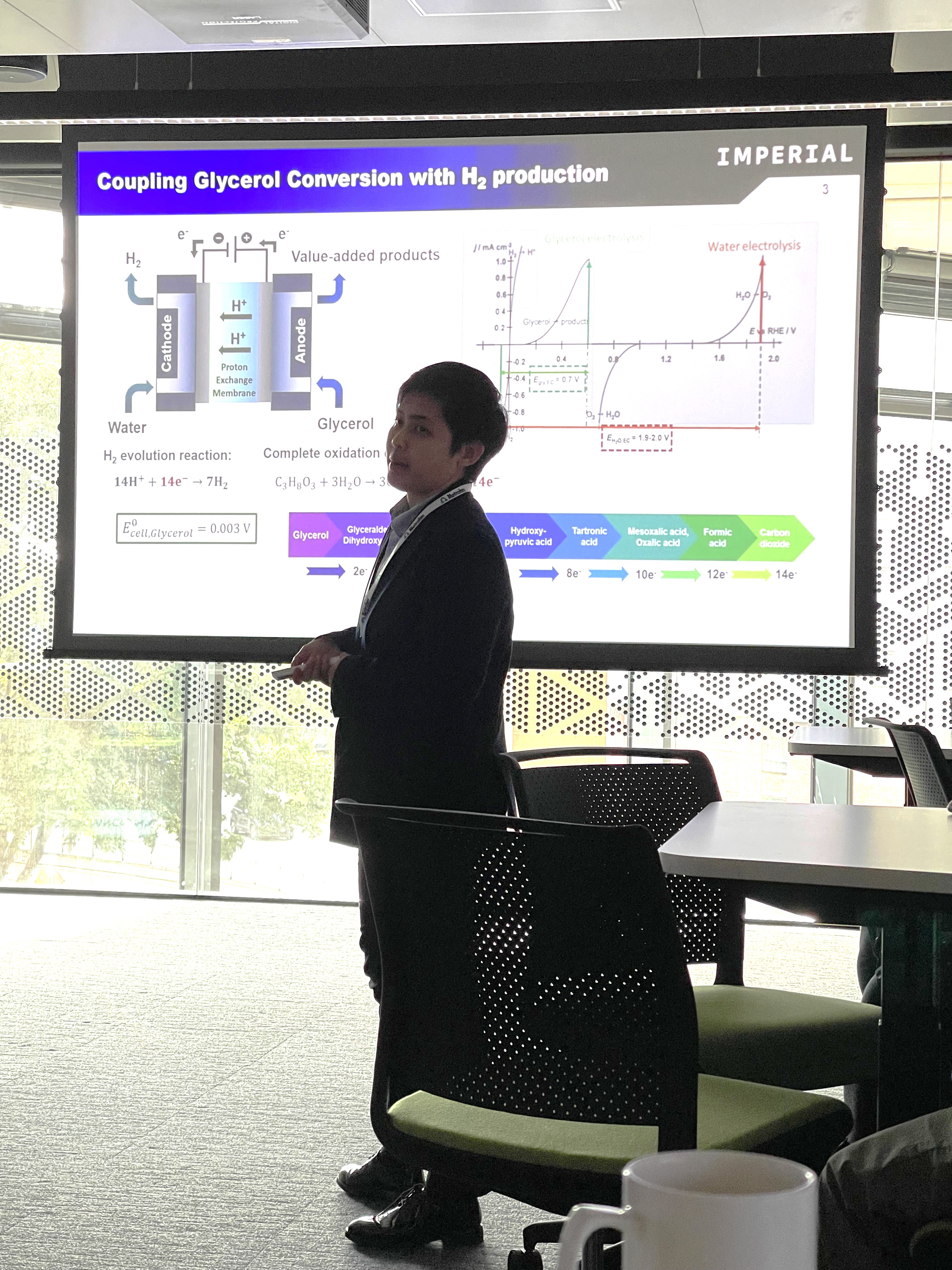 - Poster by Hanzhi on 'Biomass waste valorisation: Co-production of hydrogen and value-added chemicals via glycerol electrolysis'