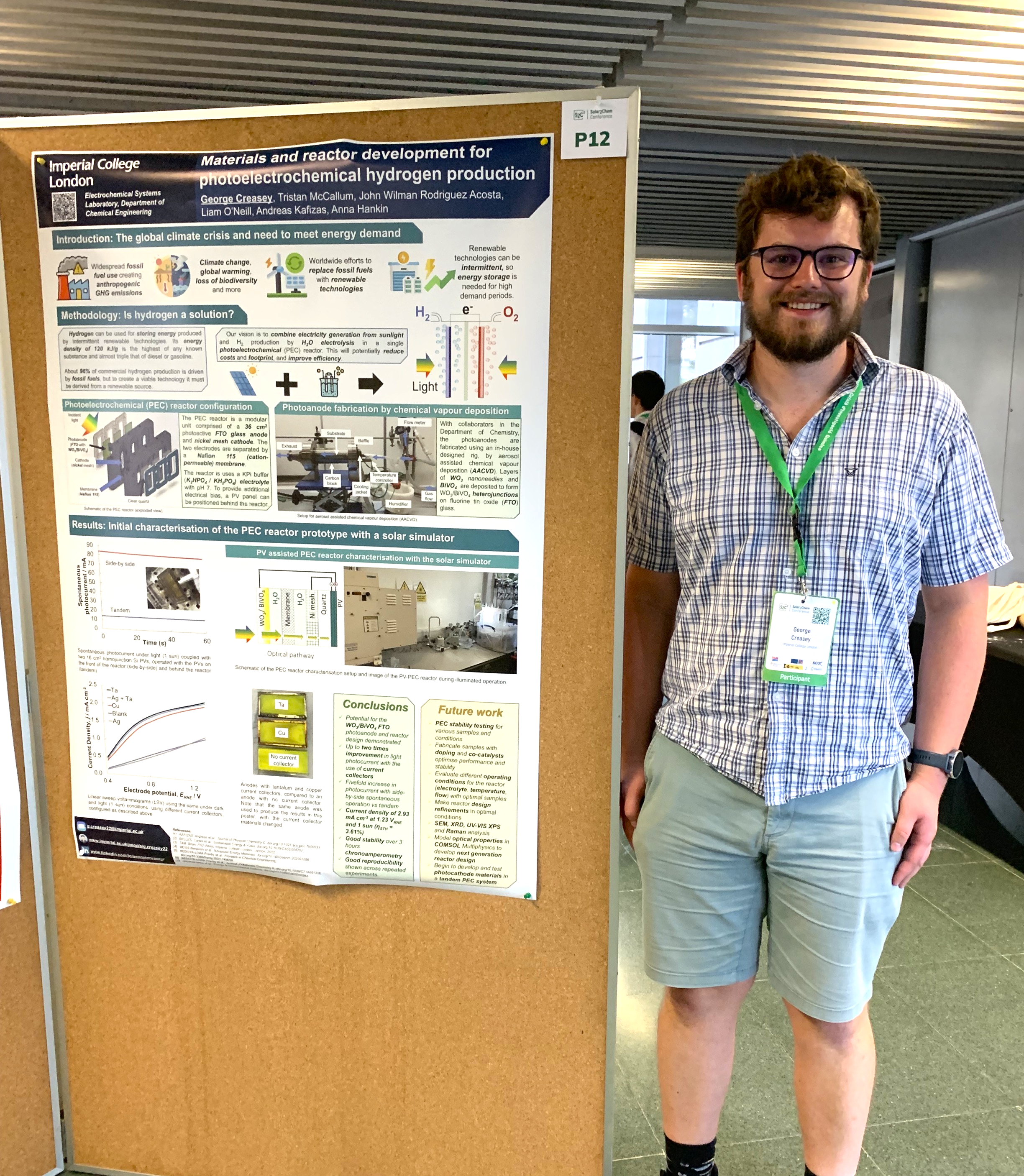 John Rodriguez Acosta and George Creasey took part in the Solar2Chem Summer Conference at ICIQ, Tarragona, Spain, presenting their work on solar hydrogen production.