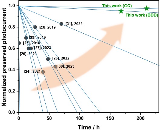 Zhu, Z.; Daboczi, M.; Chen, M.; Xuan, Y.; Liu, X.; Eslava, S. Ultrastable halide perovskite CsPbBr3 photoanodes achieved with electrocatalytic glassy-carbon and boron-doped diamond sheets. Nat. Commun. 2024, 15, 2791.