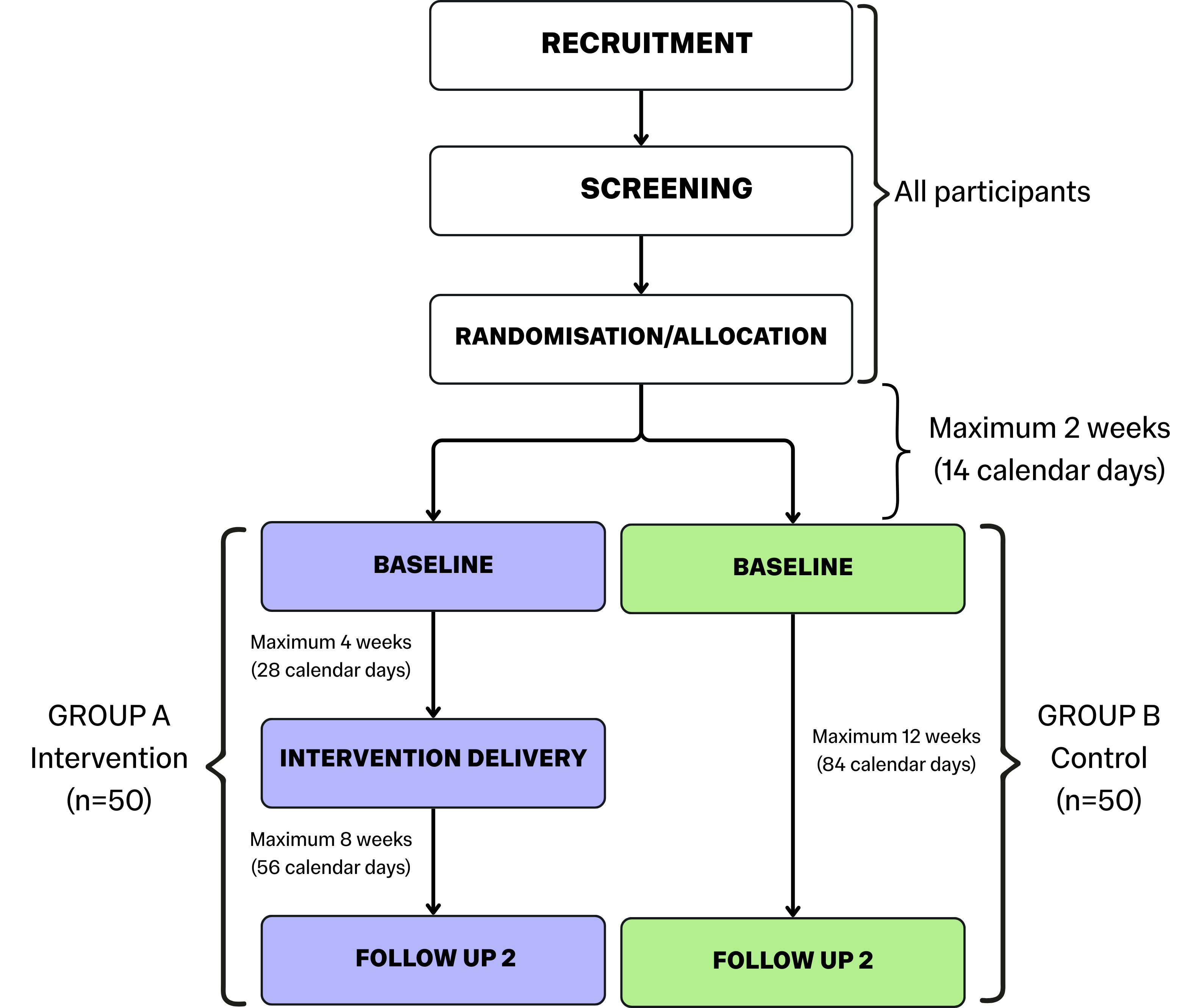 If there are differences in the appointment structure for different participant groups (e.g. intervention group vs control group), make sure you outline these clearly.