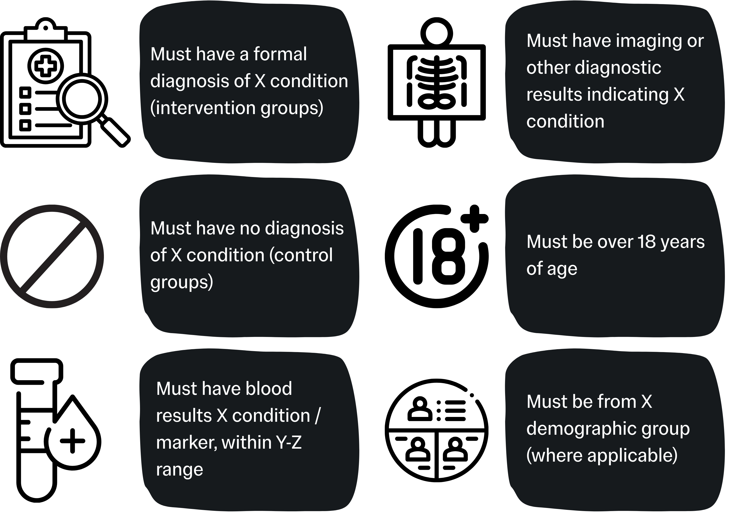 You should also include an overview of the screening and enrolment procedures for your project. You don’t need to go too in depth on the specific inclusion criteria here, as they are defined in a later section.