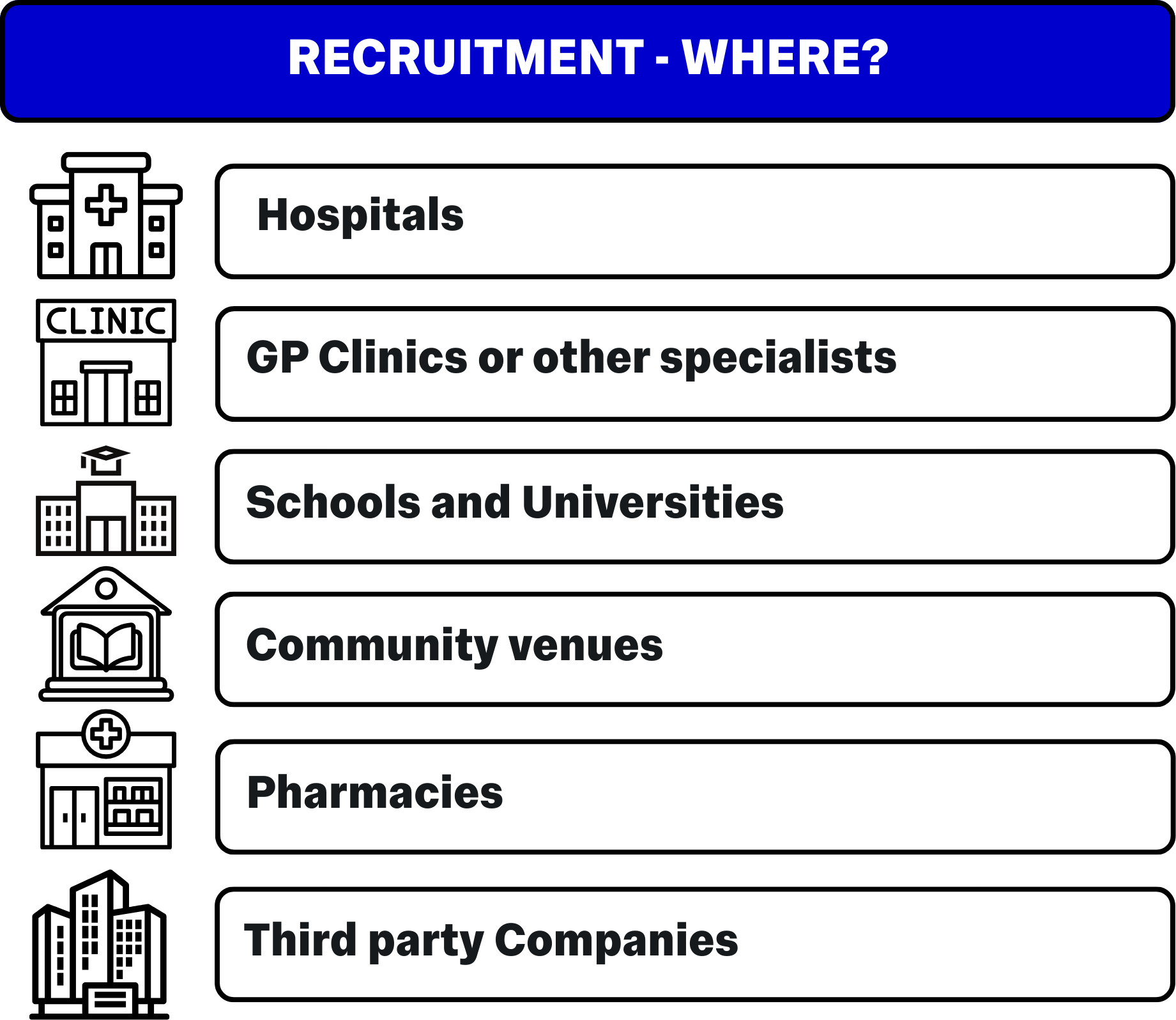 This section should also include the names, addresses, and opening hours of all sites where the study or trial is being conducted and should name which staff will be based at which sites and their roles there, as well as any important contact details for that site such as the Main Reception, and the Security Team.