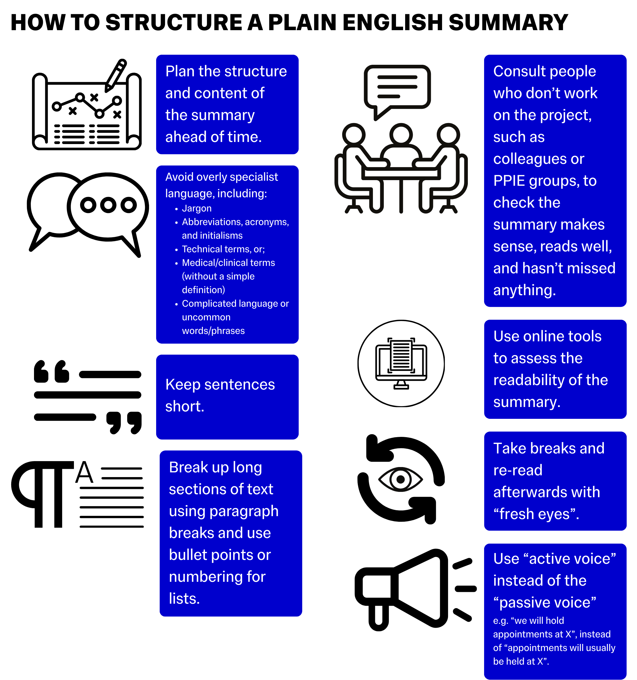 When communicating information about your project to potential participants, you will usually be speaking with lay persons, who don’t necessarily work in science, medicine or research, but who will still need to understand the project, and what it involves, just as well as the study team. A big part of this is that prospective participants must fully understand what their participation will involve, what the risks are, and what will happen to their data and any donated tissues or samples.