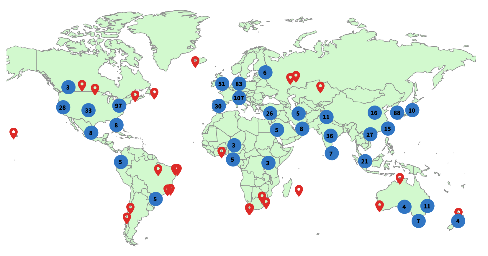 The geographical distribution of peers who cite our publications