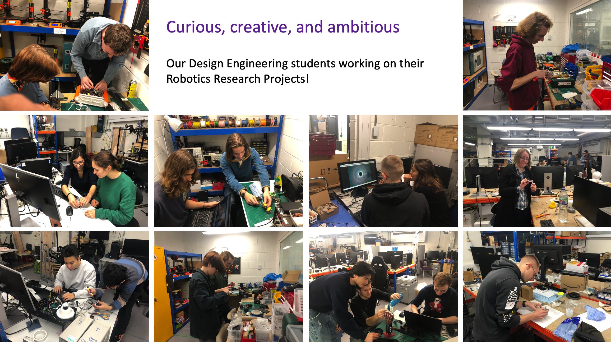 You will conduct experiments in the ACE workshop. I have also bought Arduino boards, wires, and some other consumables for each group. You can plan to order consumable items upto £200 per group.