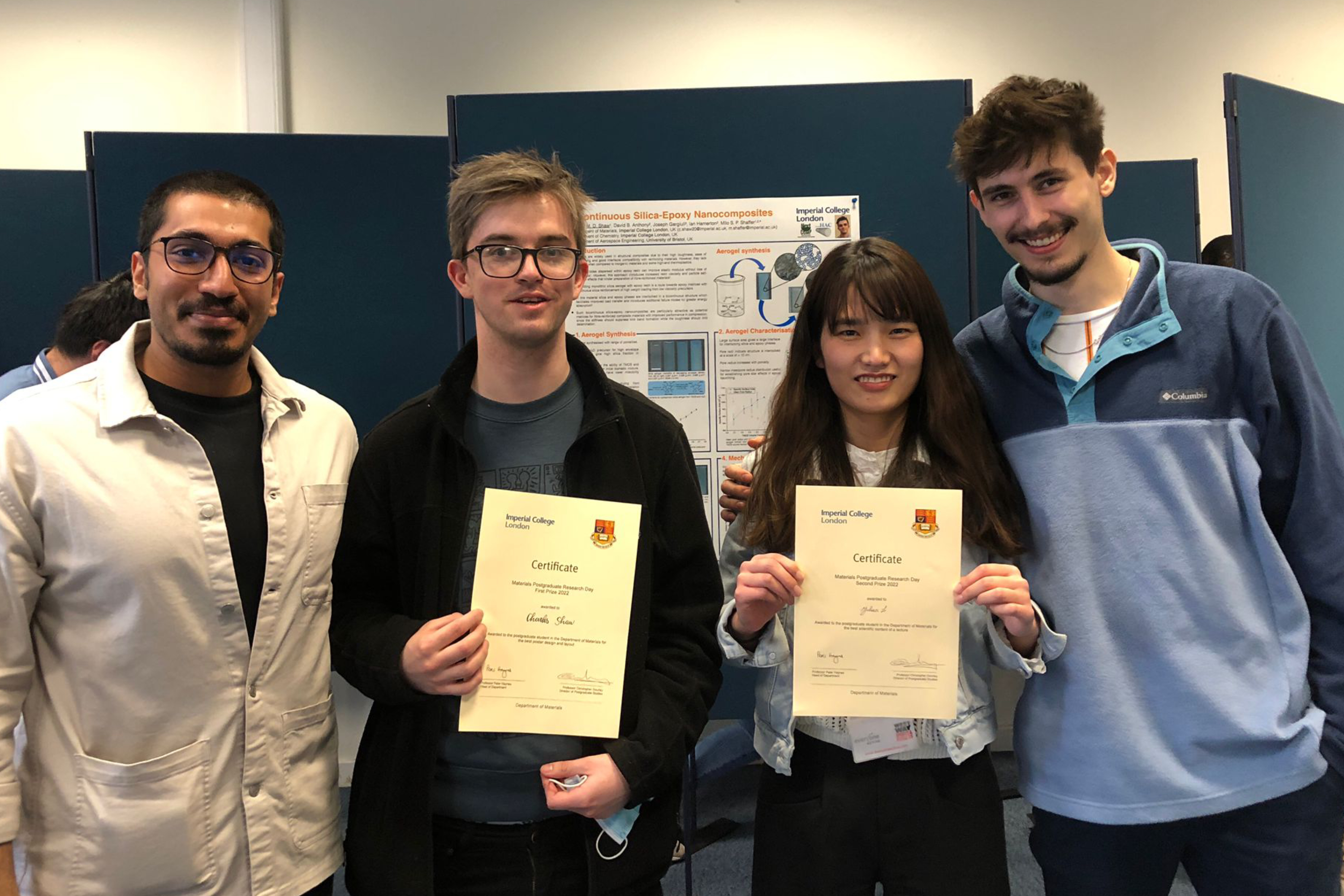 Congratulations to Yuhan Li and Charlie Shaw, who took home prizes for their oral and poster presentations respectively, at this years Materials Department Posgraduate Research Day. Well done to all who presented their research, a great day out for the NanoHAC team!