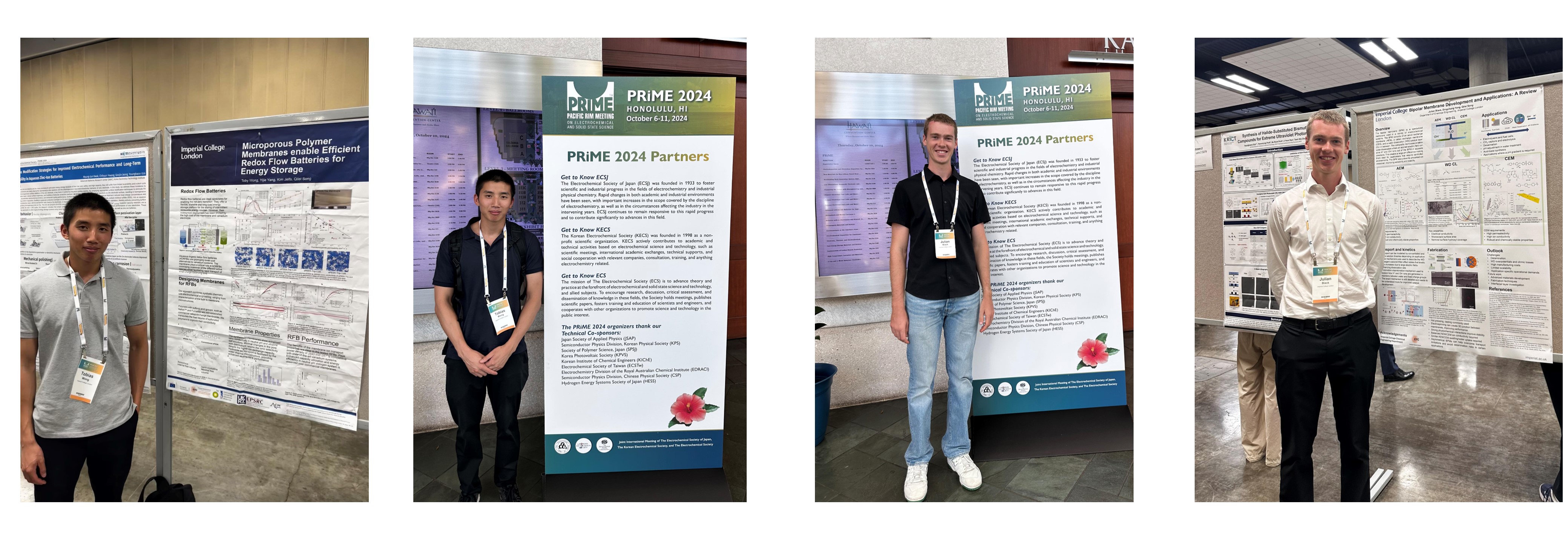 Dr Toby Wong and PhD student Julian Black attended the 2024 PRiME 2024 in Honolulu, Hawaii. Toby presented a poster on: "Microporous Polymer Membranes Enable Efficient Redox Flow Batteries for Energy Storage". Julian presented a poster on "Bipolar Membrane Development and Applications: A Review".
