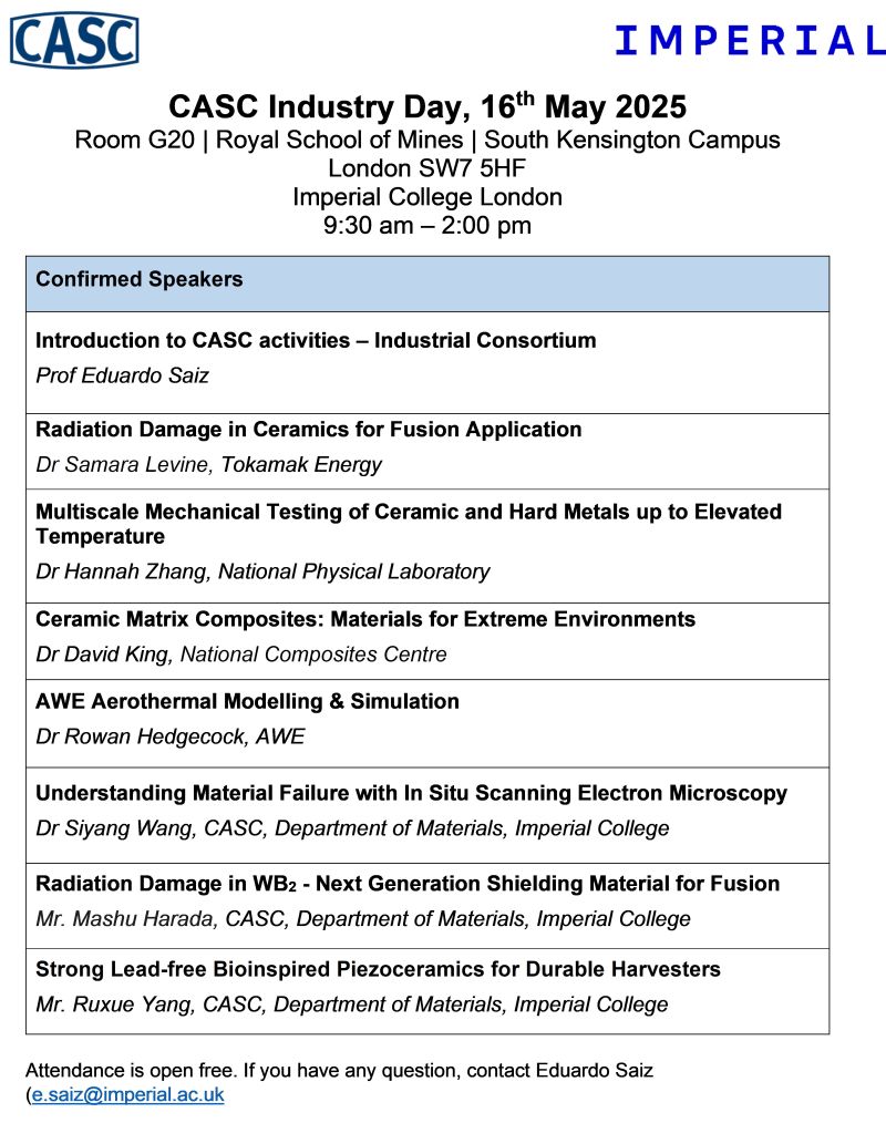 Please do not hesitate to contact Prof. Eduardo Saiz if you have any question.