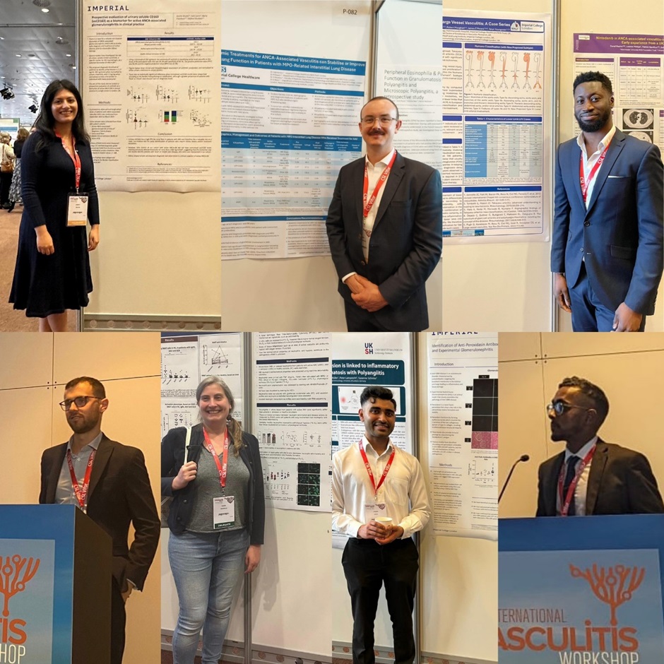 The 21st International Vasculitis Workshop took place in Barcelona on 7-10th April 20241. The conference had a wide scope including a focus on important advances in the treatment of vasculitis, cellular and molecular mechanisms of disease, clinical outcomes and biomarkers of disease activity. A large group of early career researchers from various disciplines from the Imperial Vasculitis Centre of Excellence attended to share their work, meet colleagues from around the world and learn about the latest advances in the pathogenesis and management of vasculitis. They were supported by Dr Stephen McAdoo, Dr Maria Prendecki, Dr Taryn Youngstein and Prof Charles Pusey.