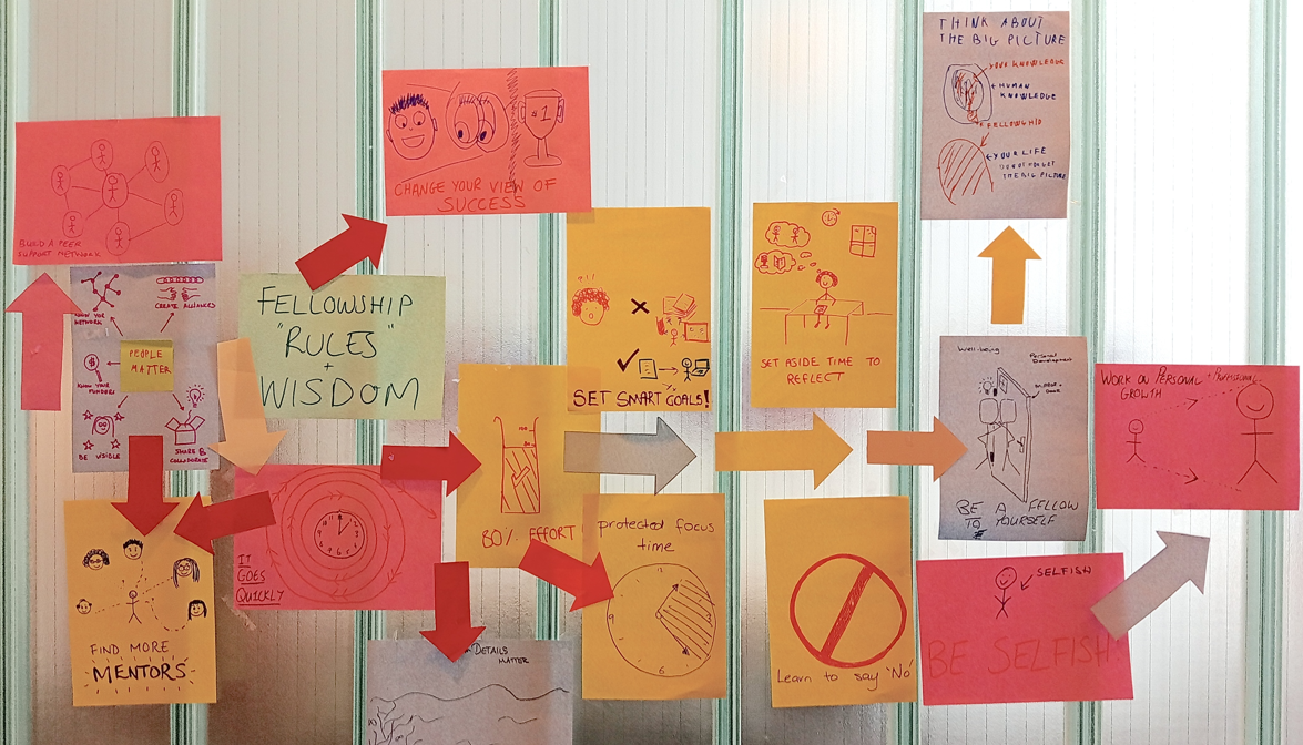In a collaborative process, a group of 10 new academics (fellows and new lecturers) worked closely with the PFDC and external consultant Dr Steve Hutchinson to co-design the format and content of the programme: a self-sustaining peer network scheme with an in-person foundational workshop day, four facilitated online sessions over six months, and a celebratory closing event. In the foundational workshop, participants from different departments are allocated into peer mentoring groups of 3-4 people, which self-organise a minimum of four peer mentoring meetings over the following six months. Groups receive materials and ongoing mentoring support. In the facilitated online sessions, a coaching-style framework is introduced to guide conversations around the elements of the UKRI ‘narrative CV’. The benefit of this pragmatic structure is two-fold: it provides a topical focus to the peer mentoring conversations, and it allows participants to create a tangible output they will likely use in the future. Involving the new academics in the conception and design of the programme meant it was tailored to their needs and expectations.