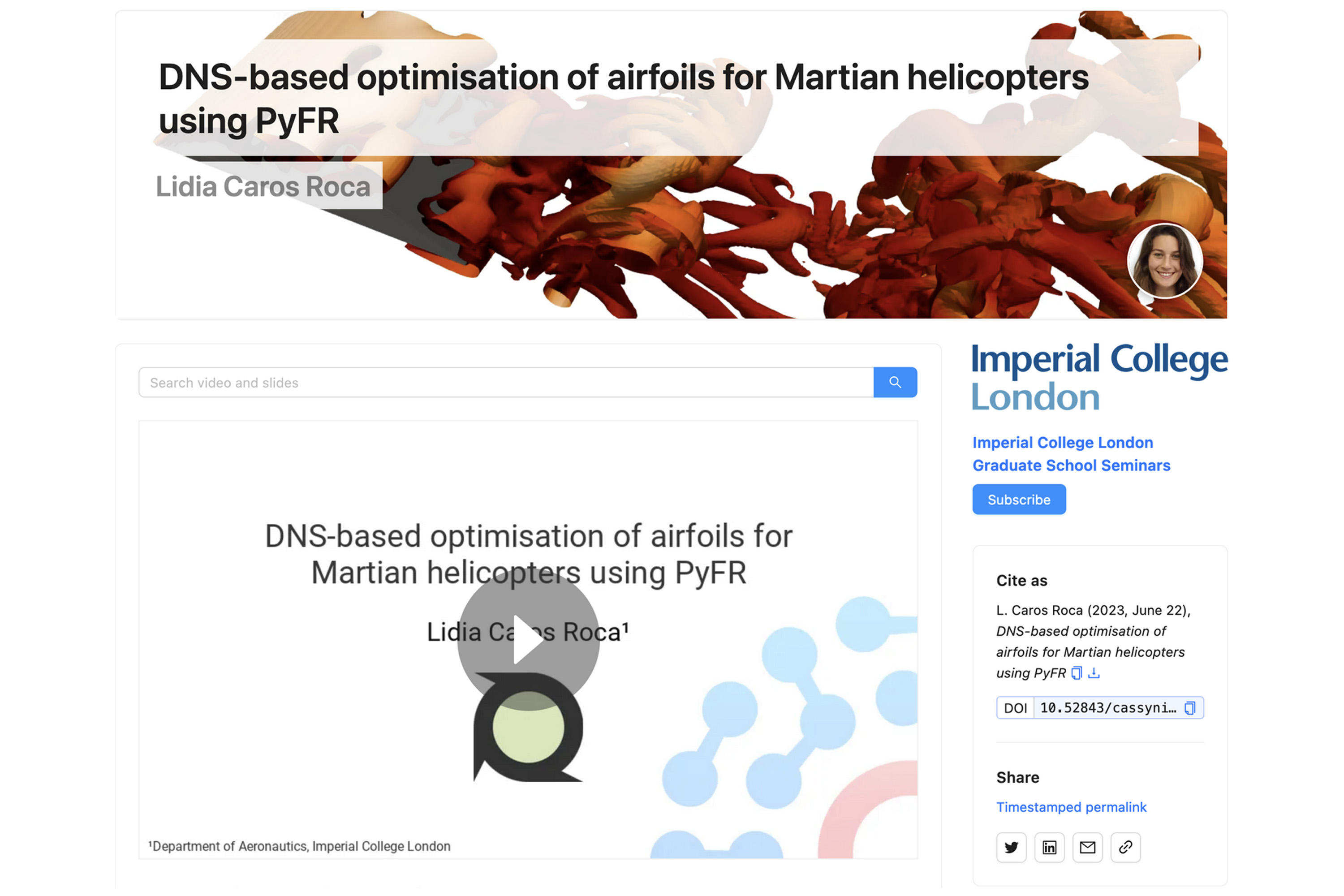 Seminar recordings are enhanced using Cassyni’s AI technology to produce high quality transcripts, extract slides, and resolve references to scholarly works contained in the talk. Your seminar will also be indexed in academic databases and linked to the wider scholarly literature.