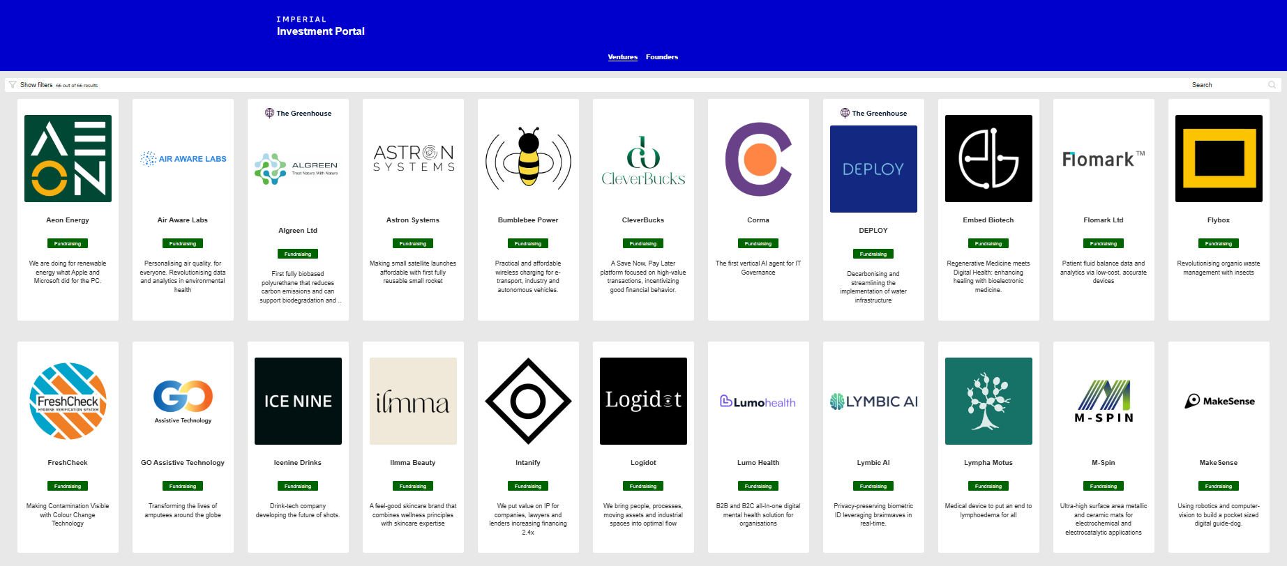 Startups at Imperial go through a vetting process before being added to the portal to ensure quality. It’s an easy way to access pitch decks and overview information to help support your investment decisions.