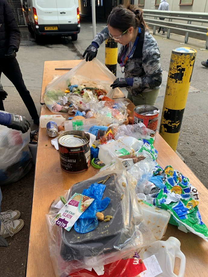 Dr Jasmin Cooper, Research Associate in the Department for Civil and Environmental Engineering, sorting general waste by material type in our waste composition analysis project.