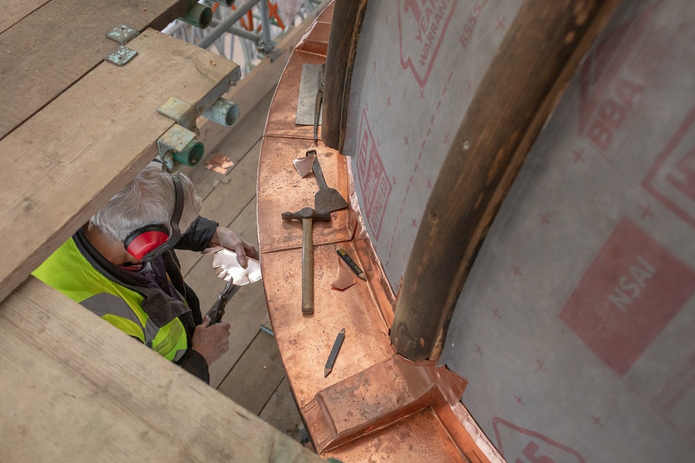 Brand new copper for the dome at the top of the tower. Its shiny glow will turn green over time. Photos Dan Weill Photography.