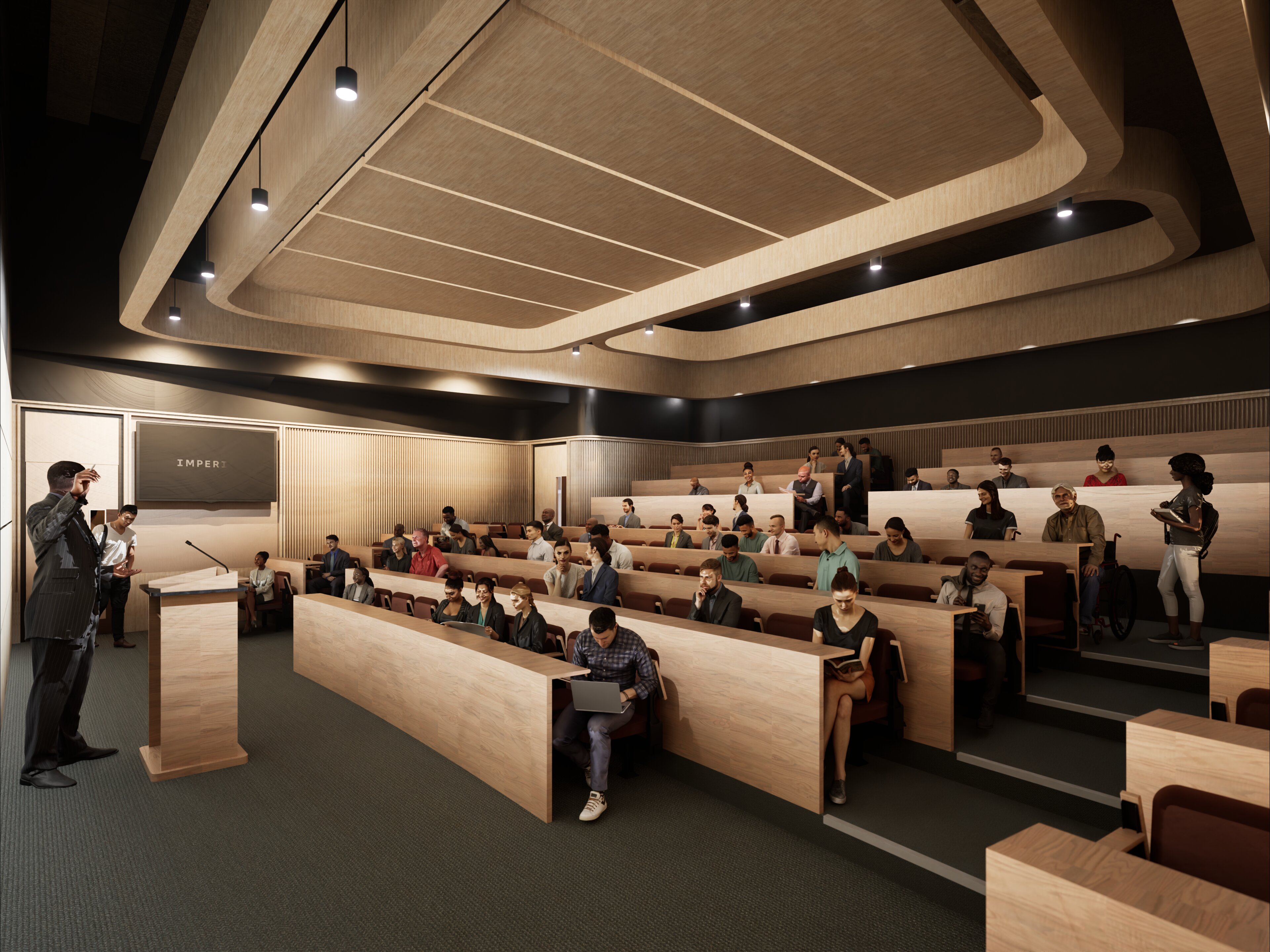 An artist's impression of one of the areas of the Great Hall in configuration as a lecture theatre.