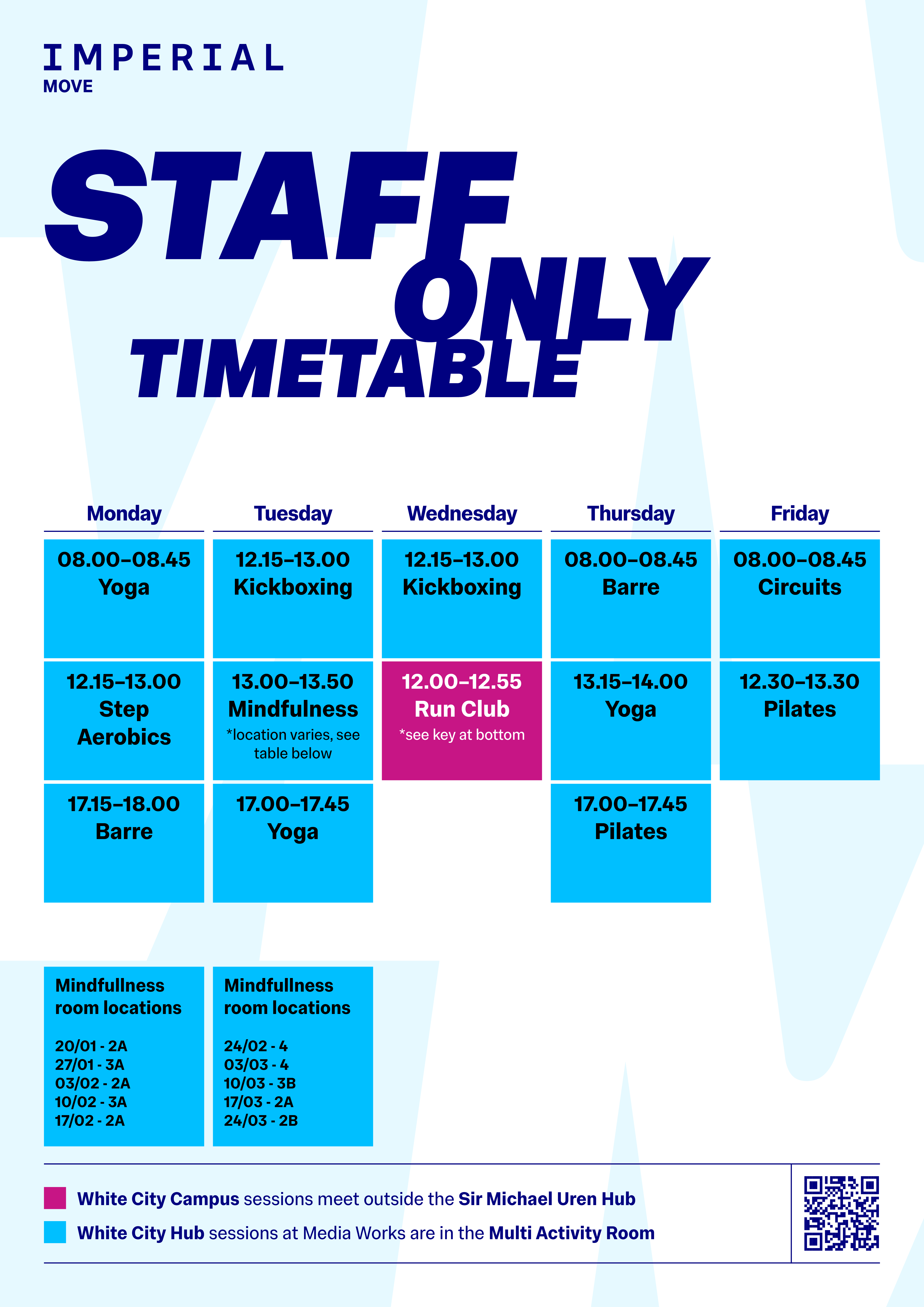 - If you will be visiting regularly for Just Move sessions, you can request access at the Imperial reception or send an email to whitecityhub@imperial.ac.uk.