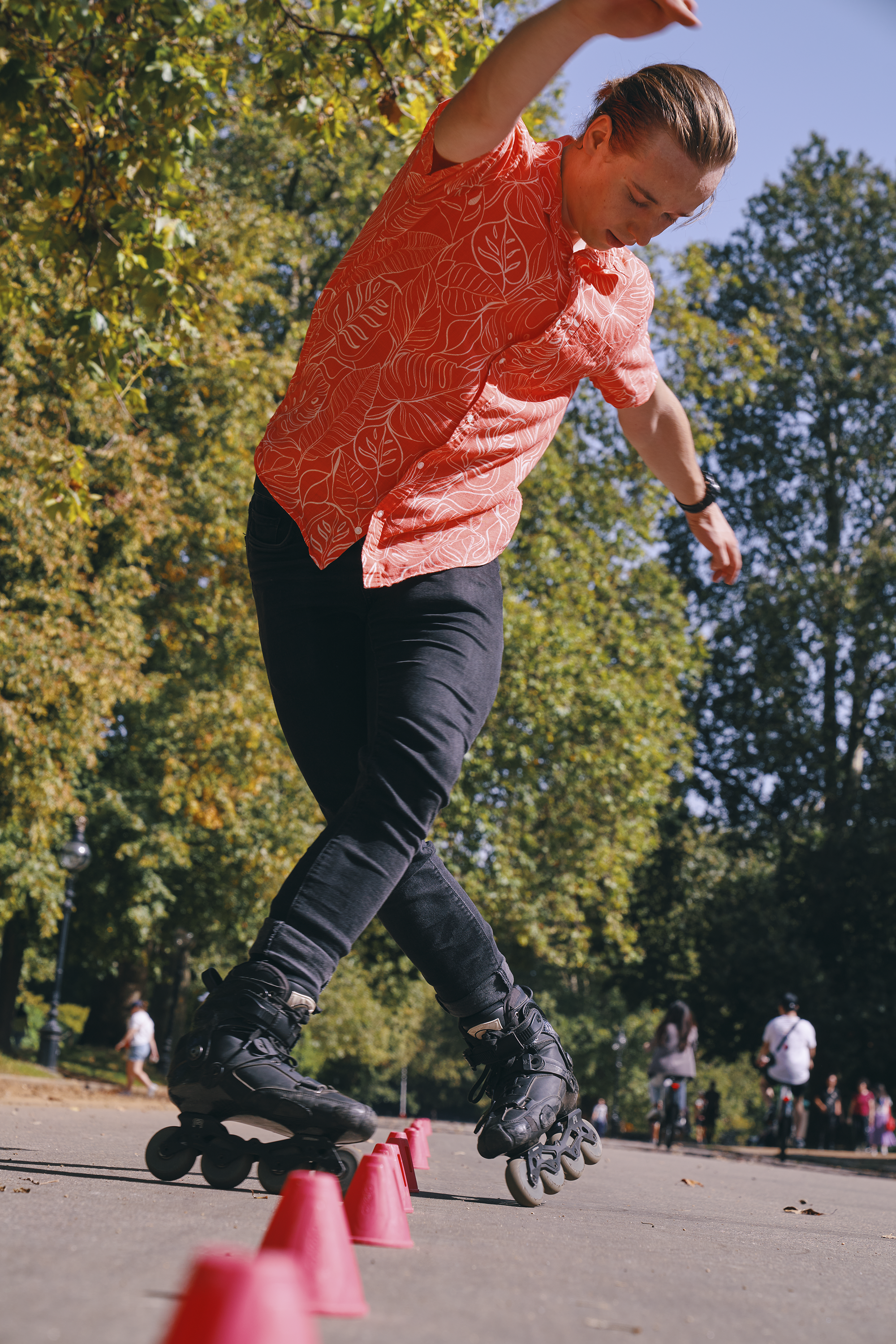 The main thing I’m into is freestyle slalom. It’s like combining figure skating and dance battle. It involves equally spaced cones and you have a set amount of time to do your most impressive routine around them. At the other end of the skating spectrum, I also do speed skating. We’ve actually entered a couple of competitions while I’ve been here, and I ended up organising two of those.