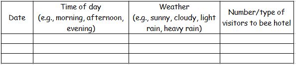Keep a field diary and record when your bees or other insects are active, for example:
