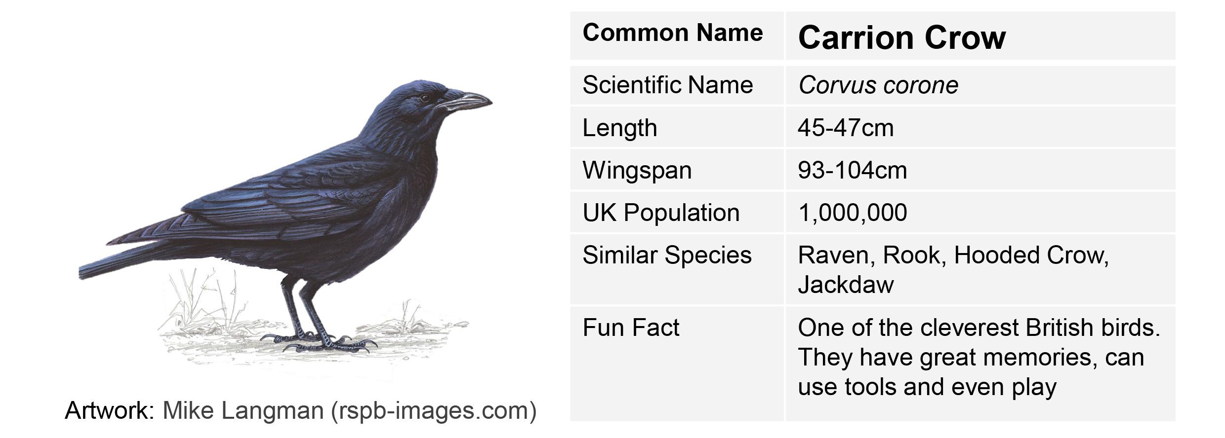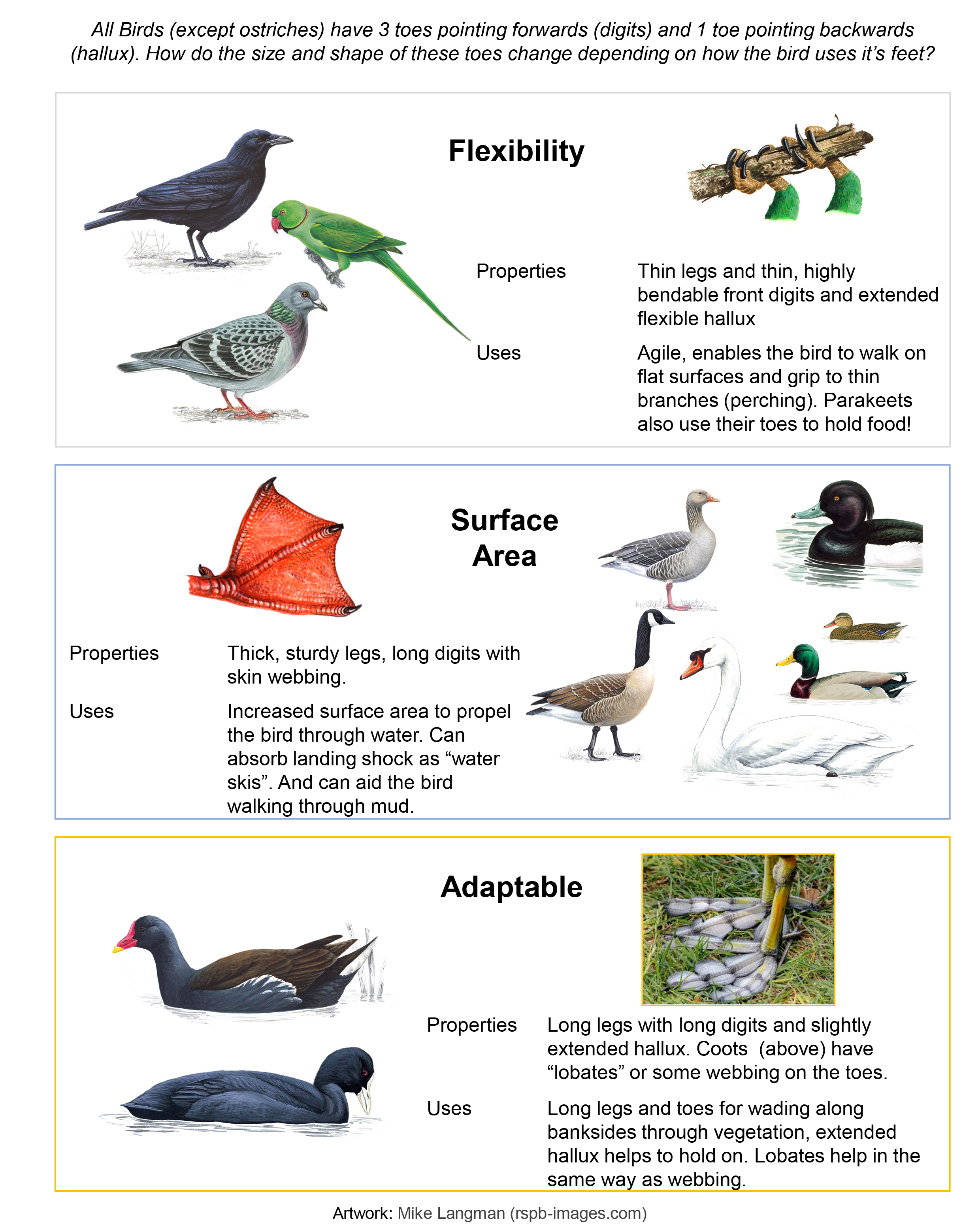 Listen Out – one of the best ways to tell birds apart is through their calls. Pigeons “coo”, ducks “quack”, and crows “caw” but listen out for what else you can hear and see if you can pick apart any more subtle differences.
