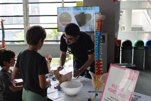 Backbone Biomechanics is our initiative from the Department of Bioengineering’s Spine Lab showcasing the functional anatomy of the spine. In this activity, we collaboratively build a spine out of model bones and clay discs, and discover how the spine looks, moves, and protects internal organs. Our goal is to demystify the concept of biomechanics, illustrating healthy practices and the progression of spinal disorders with the physical motion of the spine. We have showcased Backbone Biomechanics at the Great Exhibition Road Festival, providing examples of the research within Imperial. We have also delivered this activity to visiting school groups to promote interest in STEM and help students make an informed decision about their future career.