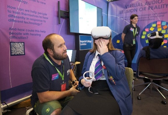 The Societal Engagement Seed Fund contributed to the success of ‘Virtual Audio: Illusion or Reality?’, one of nine flagship exhibits chosen to be featured at the Royal Society Summer Science Exhibition 2023. The exhibit brought together research from the Audio Experience Design team in the Dyson School of Design Engineering to showcase their work on the development of immersive audio and its potential applications. Visitors got the opportunity to have conversations with the research team, have their ears 3D-scanned, try out VR games, and listen to immersive audio demos.