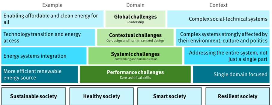 The Design Engineering department at Imperial College London, therefore, approaches this field from the perspective of the co-design of technologies and behaviours. Here, challenges span performance, systemic, contextual and global challenges towards making a more sustainable, healthy, smart and resilient society, as shown in the below diagram.