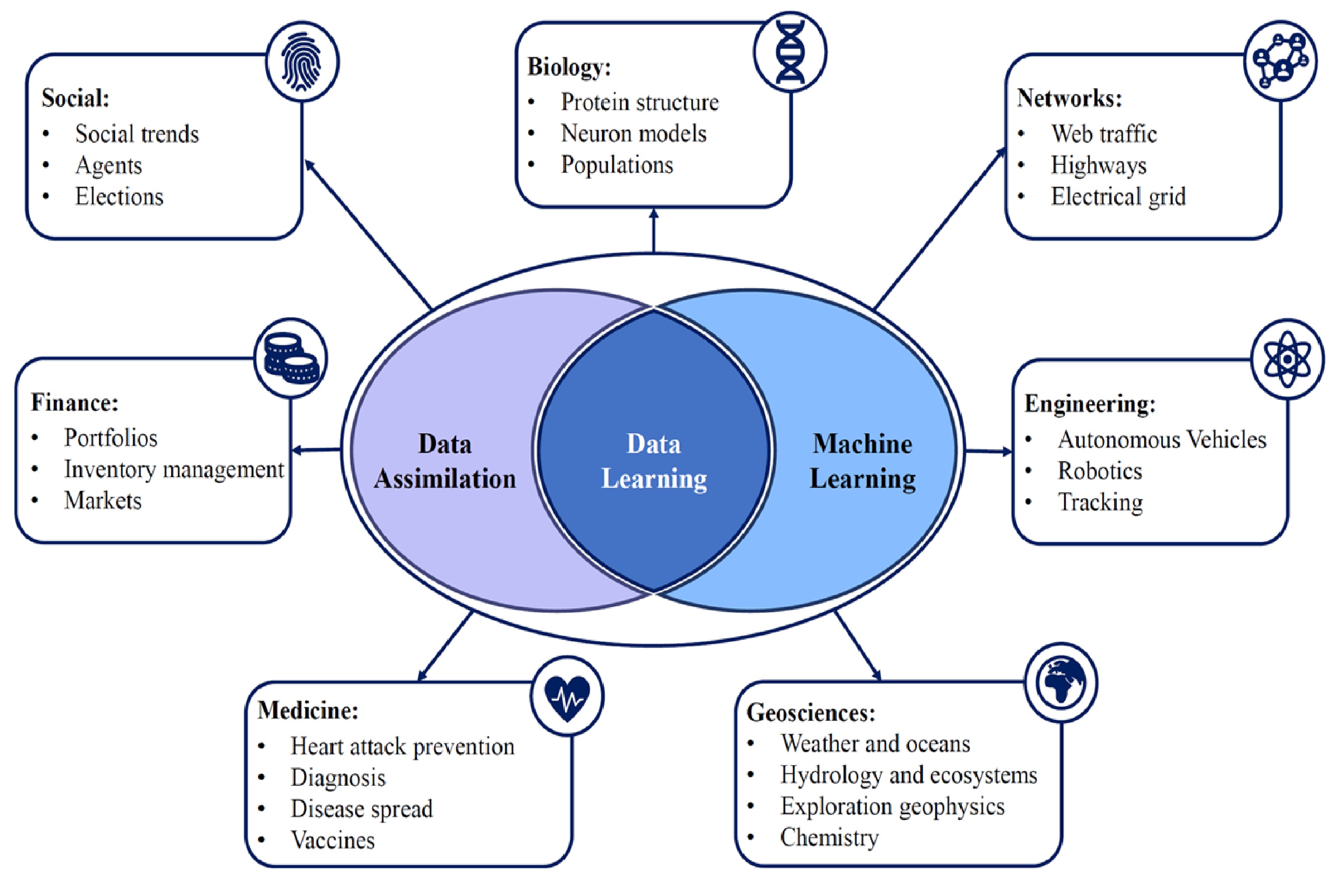 Data learning sits at the intersection of data assimilation, machine learning, and modern AI. The DataLearning Group’s approach leverages advanced data-science methodologies (ranging from statistical inference to foundation-model reasoning) to create hybrid systems that adapt to real-world complexity. By unifying physical modelling with data-centric AI, data learning yields flexible, scalable frameworks that enhance predictive accuracy, support real-time decision-making, and enable next-generation intelligent systems.