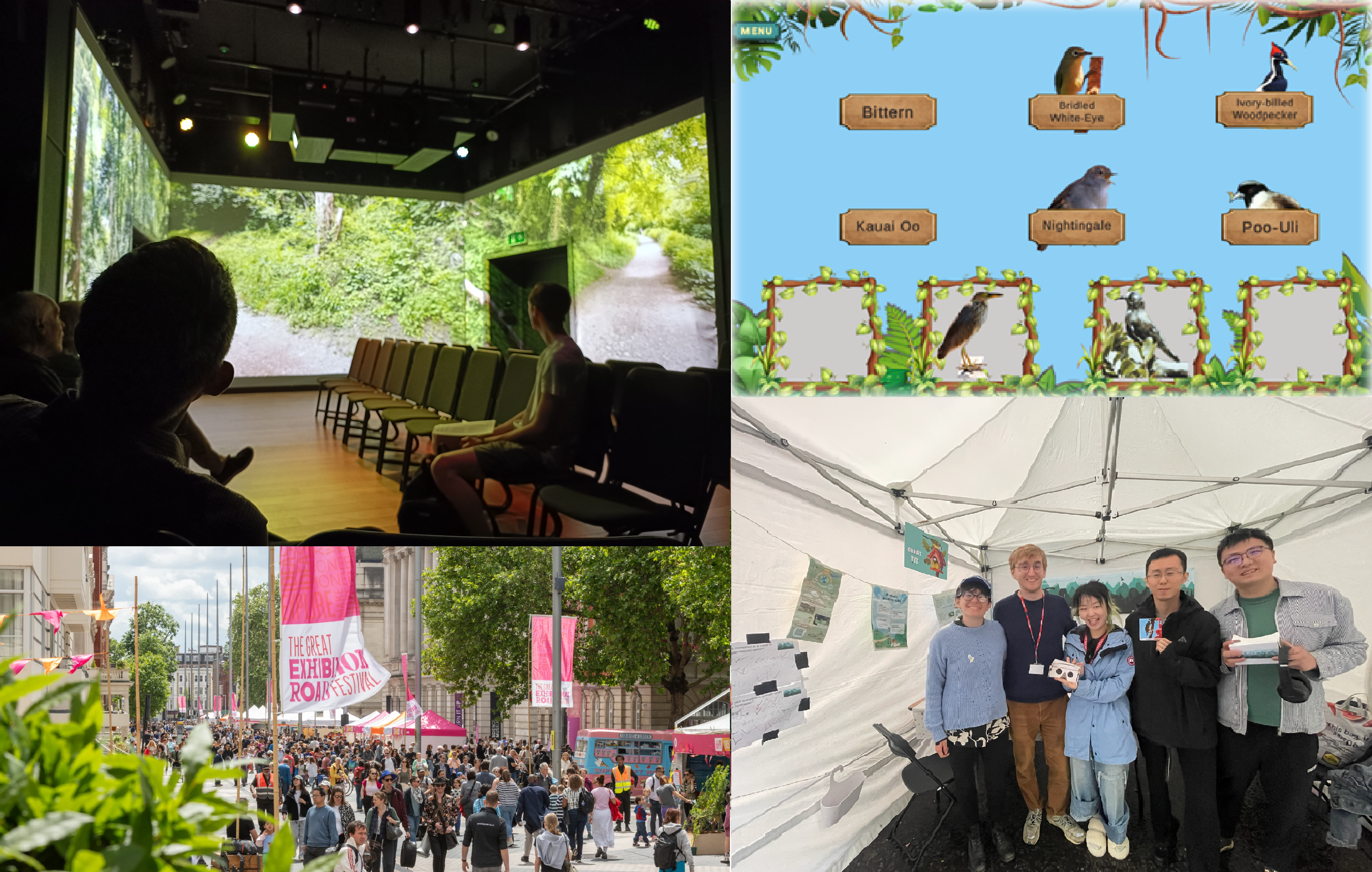 We would also like to extend special thanks to Professor Jonathan Cole from the Royal College of Music for his guidance. By presenting extinct bird sounds (provided by the Macaulay Library at Cornell), these pieces were intended to deepen the personal sense of urgency to preserve nature and biodiversity. In doing so, they can also serve as a source of emotional resonance in confronting some of the greatest challenges of our generation. The experience is designed for people of all ages and backgrounds and provided a means for everyone to reflect on how different sounds impact your wellbeing and perception of nature.
