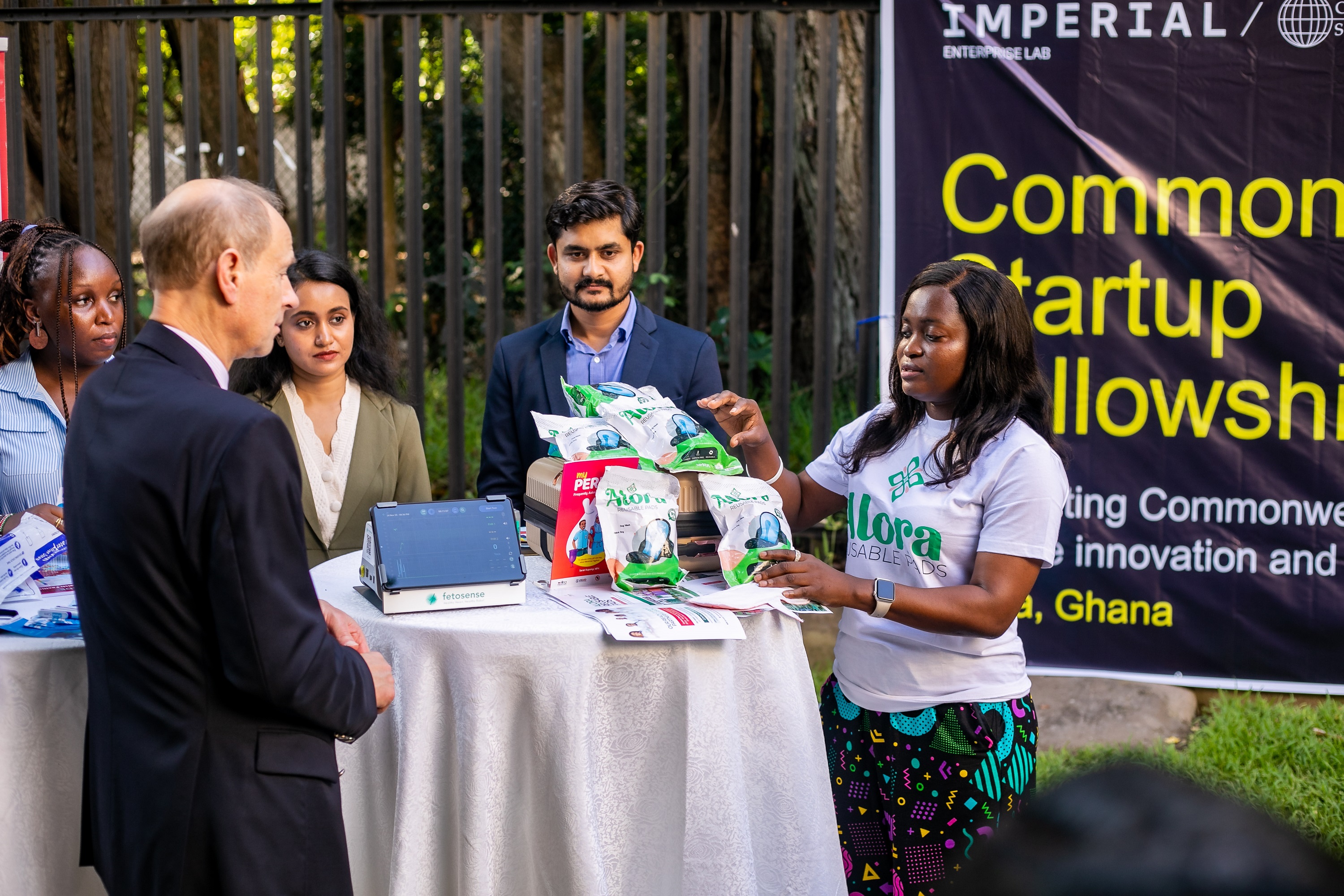 The Duke was welcomed by Ryan Shorthouse, Commonwealth Scholarship Commissioner and Clare Turner, Associate Director of Imperial Global Ghana, and was introduced to the startups by Abigail Ninson, Ghana programme manager for the Commonwealth Startup Fellowship and Ingeborg Albert UK-based Commonwealth Startup Fellowship programme manager. The visit was hosted at the British High Commission in Accra.