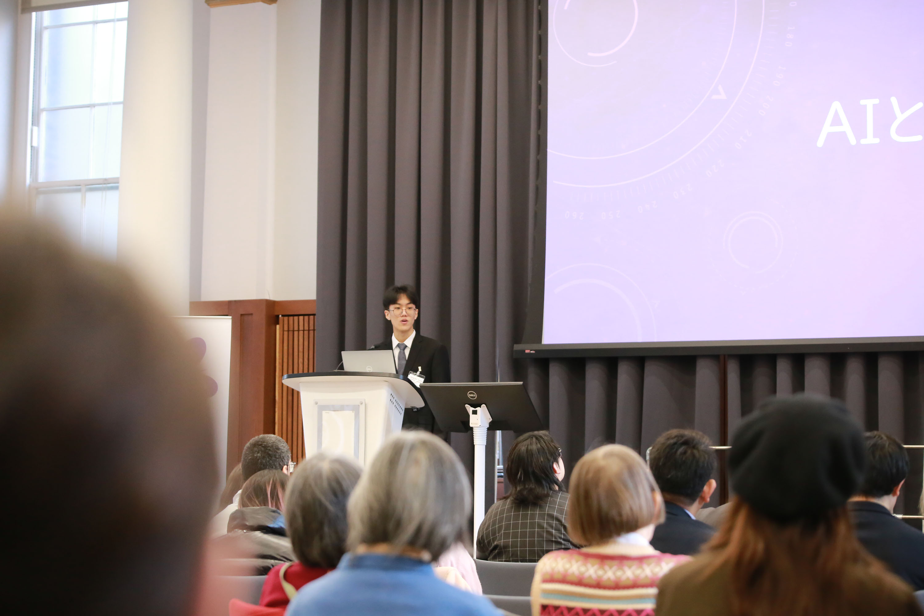 Kevin Cheng (Japanese Level 4, 3rd Year Chemical Engineering) gave a presentation entitled 「AIとより良い社会」 (AI and a Better Society) and explored the impact of artificial intelligence (AI) on modern society, highlighting both its benefits and potential risks. Kevin was awarded Second Prize in the Individual Presentation Category
