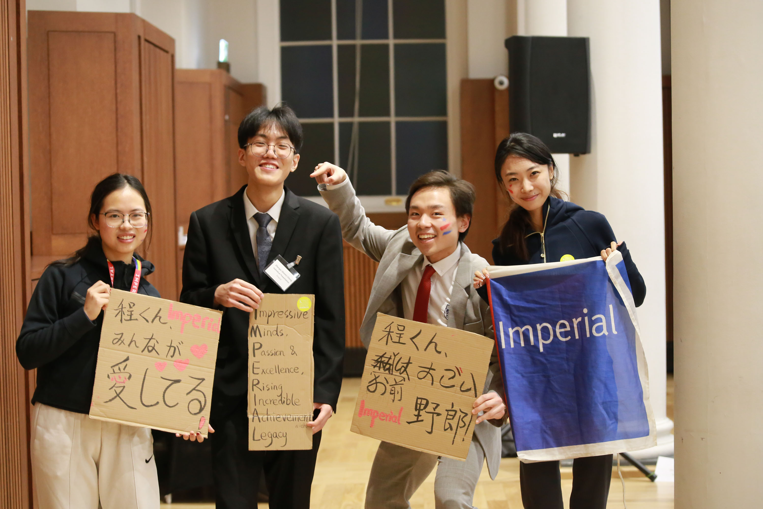 The Imperial group consisting of Xinlin Li (Japanese Level 2, 2nd Year Chemistry), Olivia Guo (Japanese Level 2, 2nd Year Mathematics), Yuchen Sun (Japanese Level 2, 2nd Year Mathematics) and Justin Guo (Japanese Level 2, 2nd Year Mathematics) gave a talk about「麻雀(マージャン)」 (Mahjong, a Chinese traditional game) and entertained the audience. The team was announced as one of five winners in the Group Presentation Category.