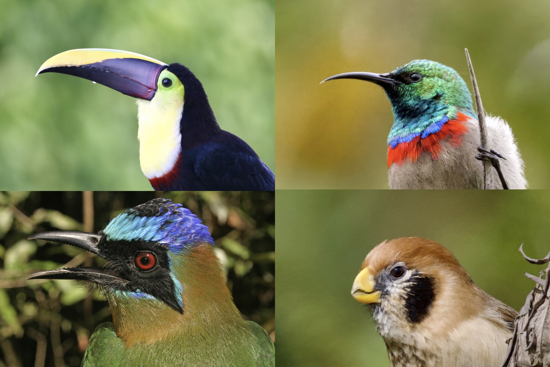 Spectacular variation in beak design provides information on the ecological roles and functions of birds, such as seed dispersal, pollination, and predation. The authors use measurements of all bird species – including toucans, sunbirds, motmots and parrotbills – to estimate impacts of land-use change on ecosystem resilience. Photos credit: Professor Joe Tobias