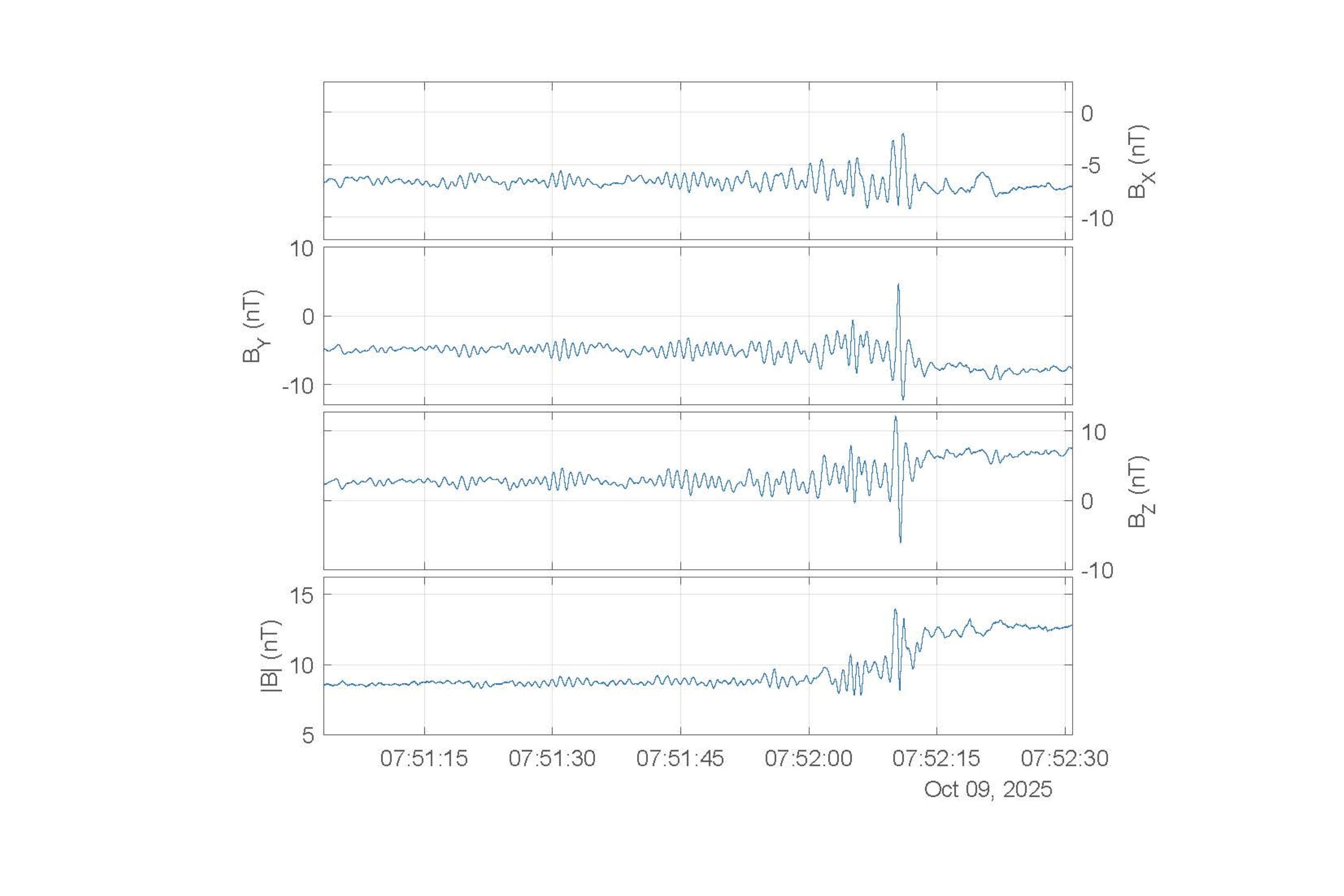 The instrument’s first-light data has successfully captured the magnetic component of shockwaves created by the solar wind, an important step in validating its performance and beginning its scientific mission.