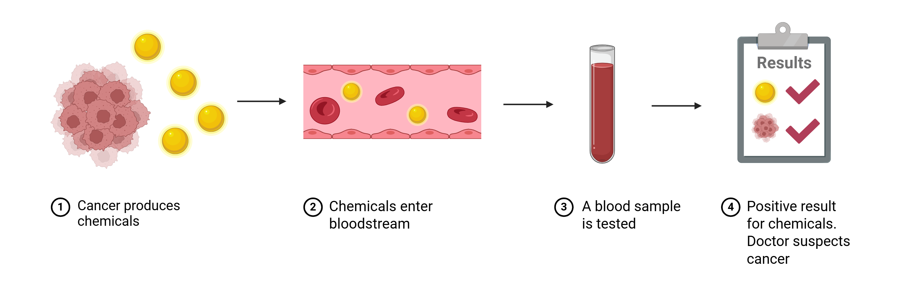 A biomarker is a chemical usually found in the blood that can be a warning sign to doctors that a cancer is present. Biomarkers are usually chemicals created in some way by a cancer. There are already several biomarkers that help doctors detect cancers, such as prostate cancer and ovarian cancer.
