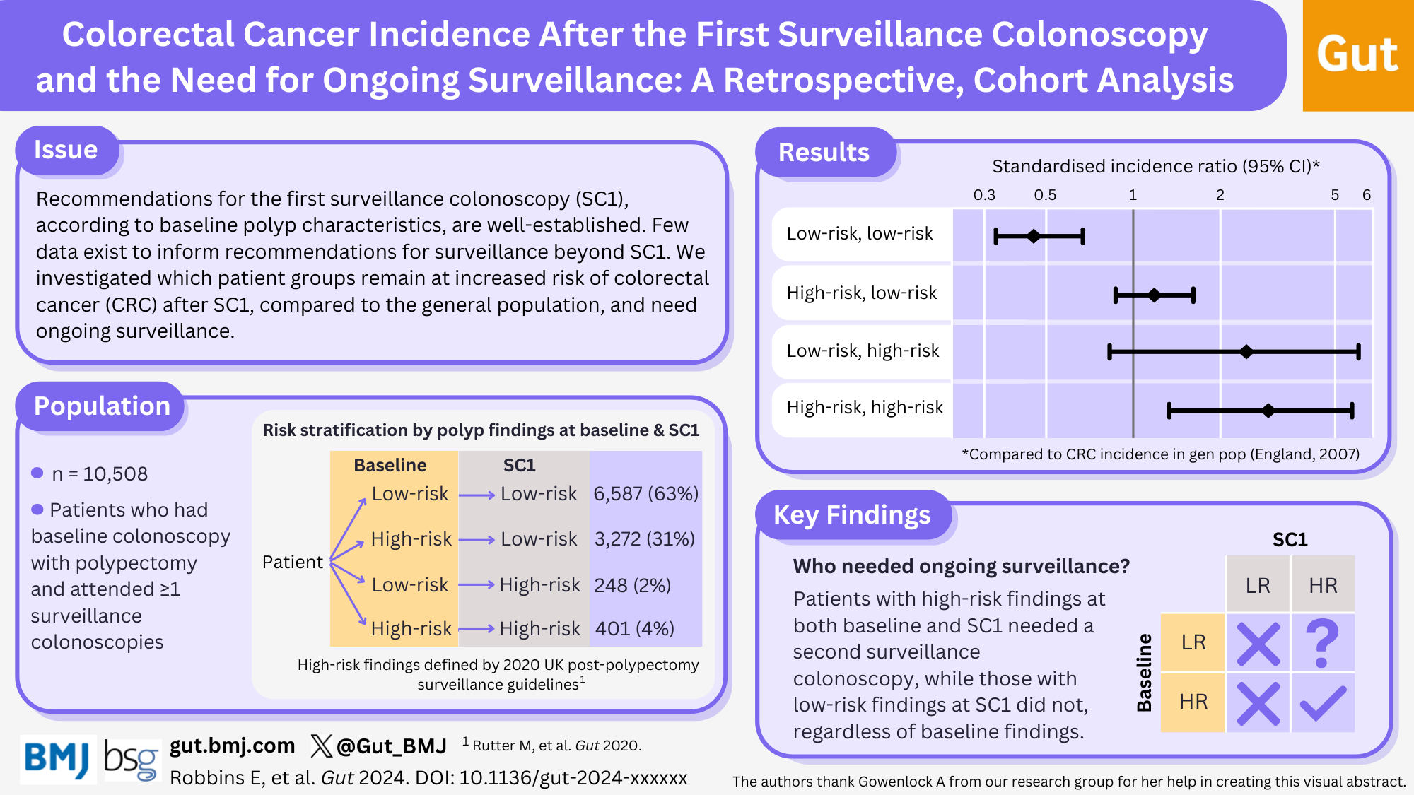 Our latest paper in Gut BMJ uses data from our All Adenomas study to ask which patients under surveillance for bowel cancer after polyp removal need to continue having surveillance beyond their 1st surveillance colonoscopy.
