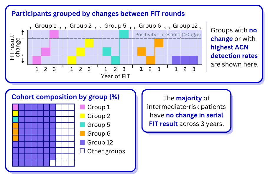 This trial is one of the first of its kind to assess the role of serial FIT testing in a surveillance population. We provide compelling evidence that multiple rounds of FIT testing could further risk-stratify intermediate-risk patients. Integrating FIT-based surveillance with colonoscopy could enhance colorectal cancer prevention and early detection by freeing up endoscopy resources and ensuring colonoscopies are used efficiently. We hope that our findings will inform future guidelines and contribute to a more efficient, evidence-based approach to monitoring patients at increased risk of colorectal cancer.