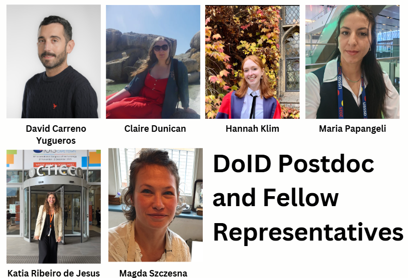 Our Postdoc and Fellows Representatives for the Department of Infectious Disease. The representative are key keeping the DoID and ECR Institute informed about the needs of Postdocs and Fellows. Through their commitment and creativity, they plan social and training opportunities within the Department.