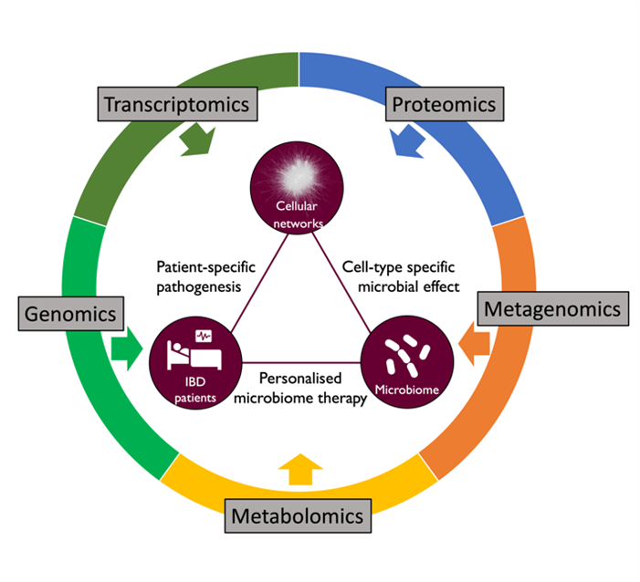 Inflammatory Bowel Disease (IBD) is a disorder of the human gastrointestinal tract characterised by inflammation of the gut mucosal layer and dysbiosis of the microbiome. IBD can broadly be classified into two diseases - Ulcerative Colitis (UC) and Crohn’s Disease (CD) - which are increasingly prevalent in the global population. However, IBD is a complex disease influenced by a variety of extrinsic and intrinsic factors such as genetics, microbiome, lifestyle (diet, smoking etc), xenobiotic exposures etc. In the Korcsmaros group, we aim to understand IBD using multiple different angles and various omics techniques as input data sources. To investigate patient-specific pathogenesis in IBD, we collaborate with Séverine Vermeire’s IBD team from Leuven and with the UK IBD Genetic Consortia. We use patient-specific genomics and transcriptomics information from these collaborators to decipher how patient-specific genomic background contributes to IBD.