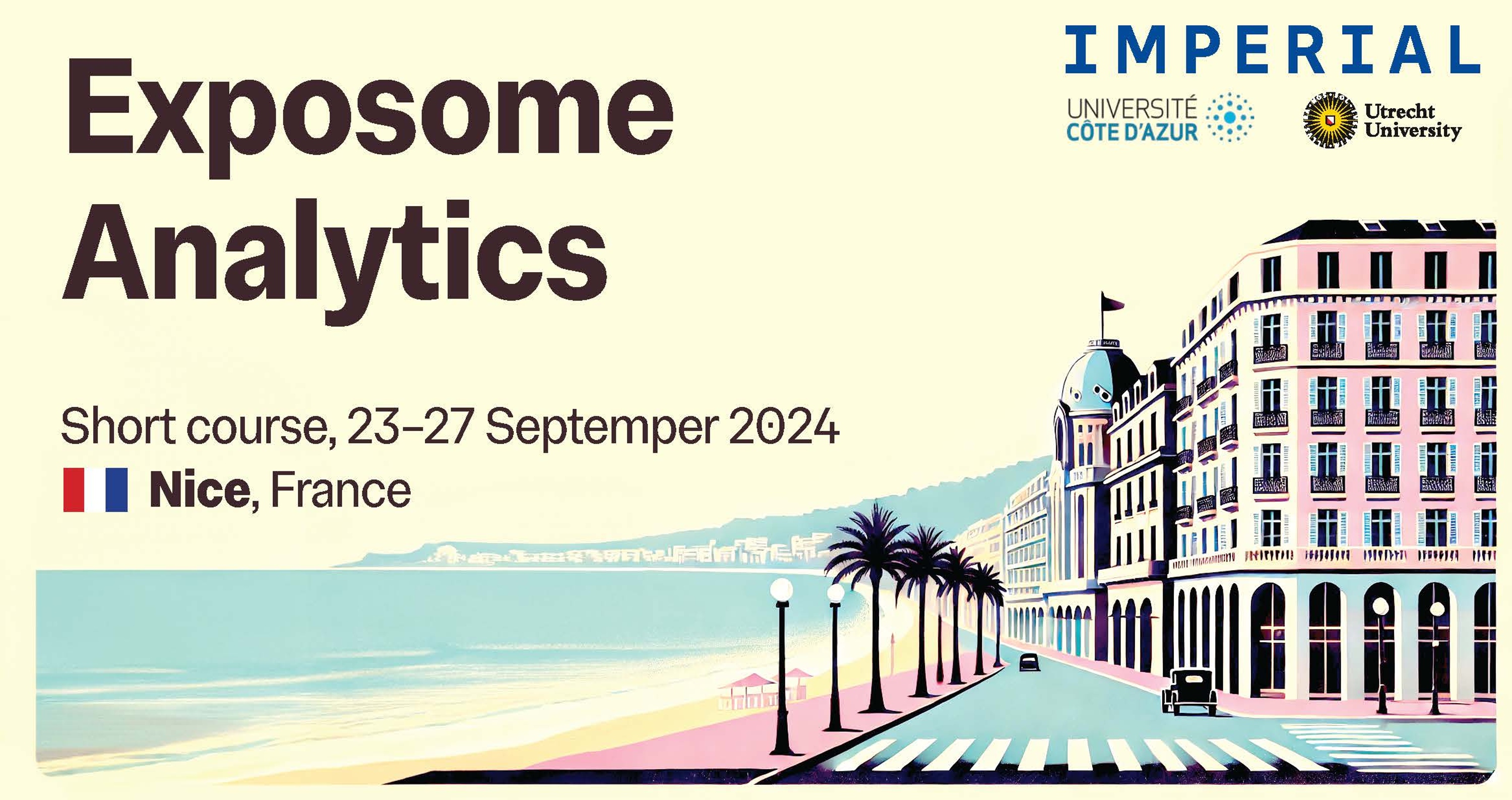 Exposome Analytics will be held at Université Côte d’Azur from 23rd to 27th September 2024. Each day begins with lectures introducing theoretical concepts, followed by a seminar and a practical session to illustrate these concepts.
