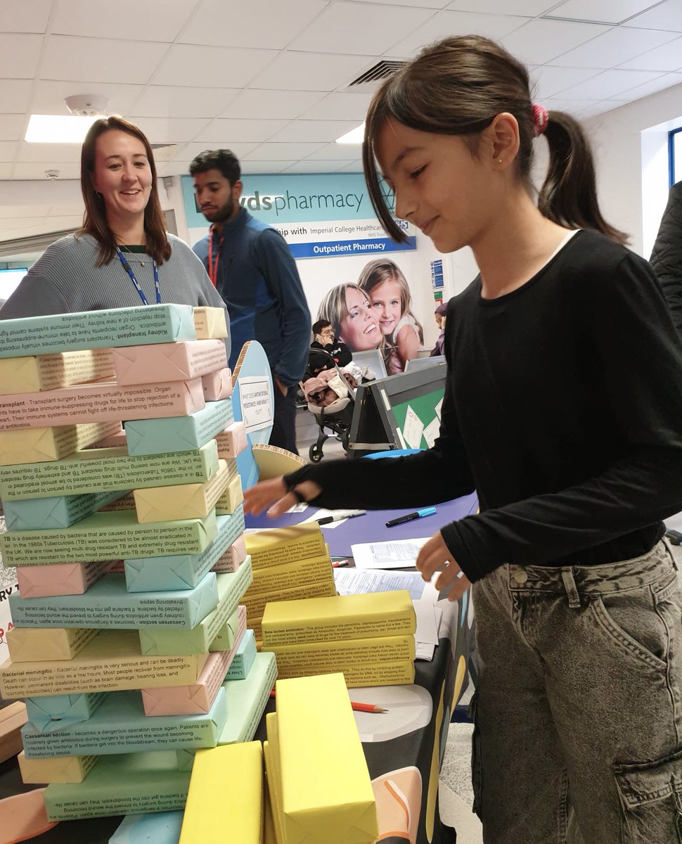 The events under the banner of "Preventing Antimicrobial Resistance Together" engaged patients and the public, shedding light on the global threat of AMR and encouraging individuals to understand their role in addressing it. Attendees experienced a vivid portrayal of the delicate balance between modern medicine and antibiotics through our immersive Jenga game. Additionally, we conducted a brief voting game to gather insights into the online purchase of antibiotics, contributing to an ongoing study. This initiative received support from Master's students at City University, situated at St Mary's Hospital. This voting game saw almost 100 participants take part across both days. As a token of appreciation, participants were invited to enter a prize draw for a chance to win £100 Amazon vouchers.