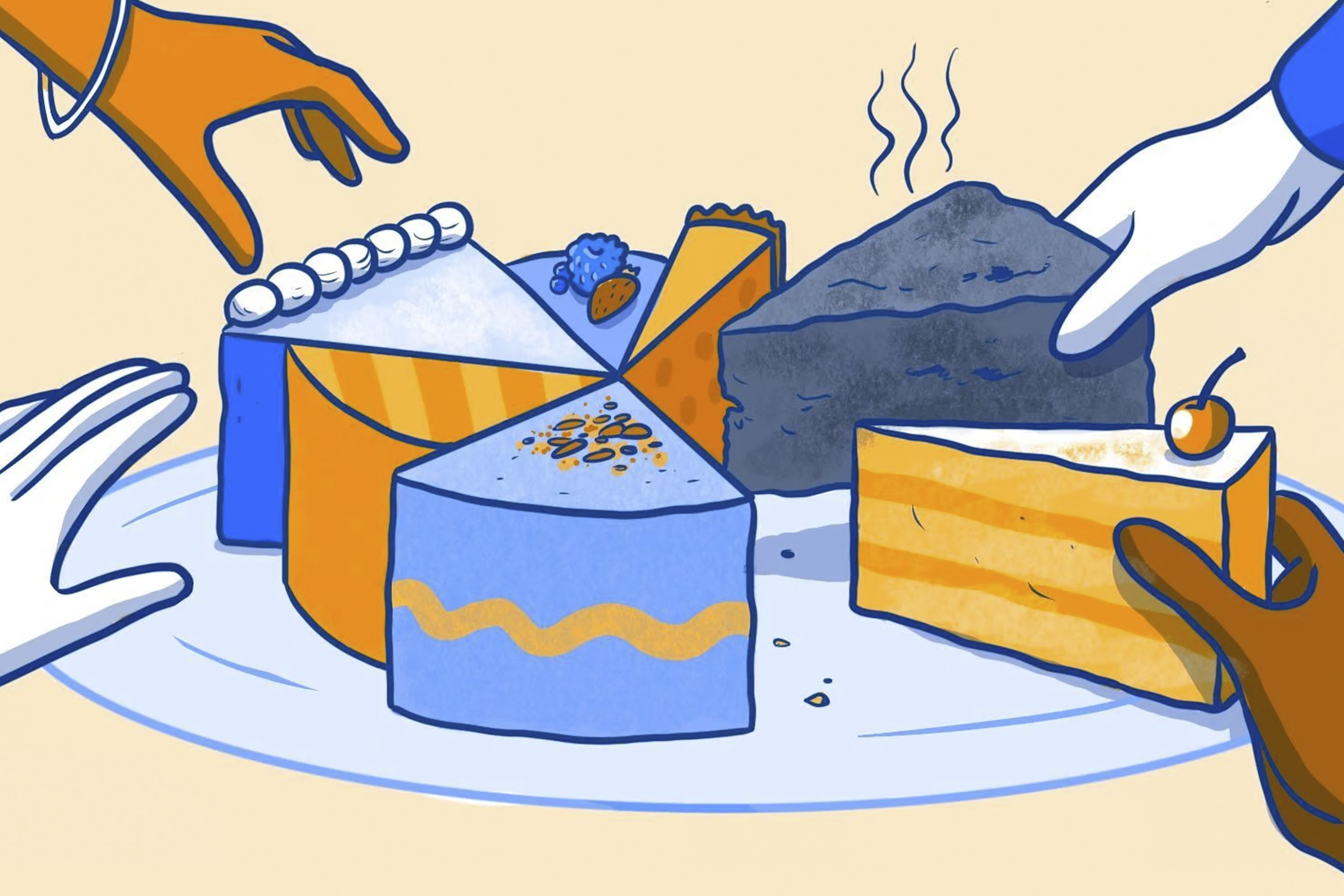 Imagine you live in small block of flats. There are nine flats. On the ground floor and first floor there are four flats on each floor. An estate agent thinks they are worth about £100,000 each. There is one flat on the top floor. It is as big as four flats combined. It’s a penthouse with amazing views of the city. he estate agent thinks this is worth £1,000,000, £1 million pounds.