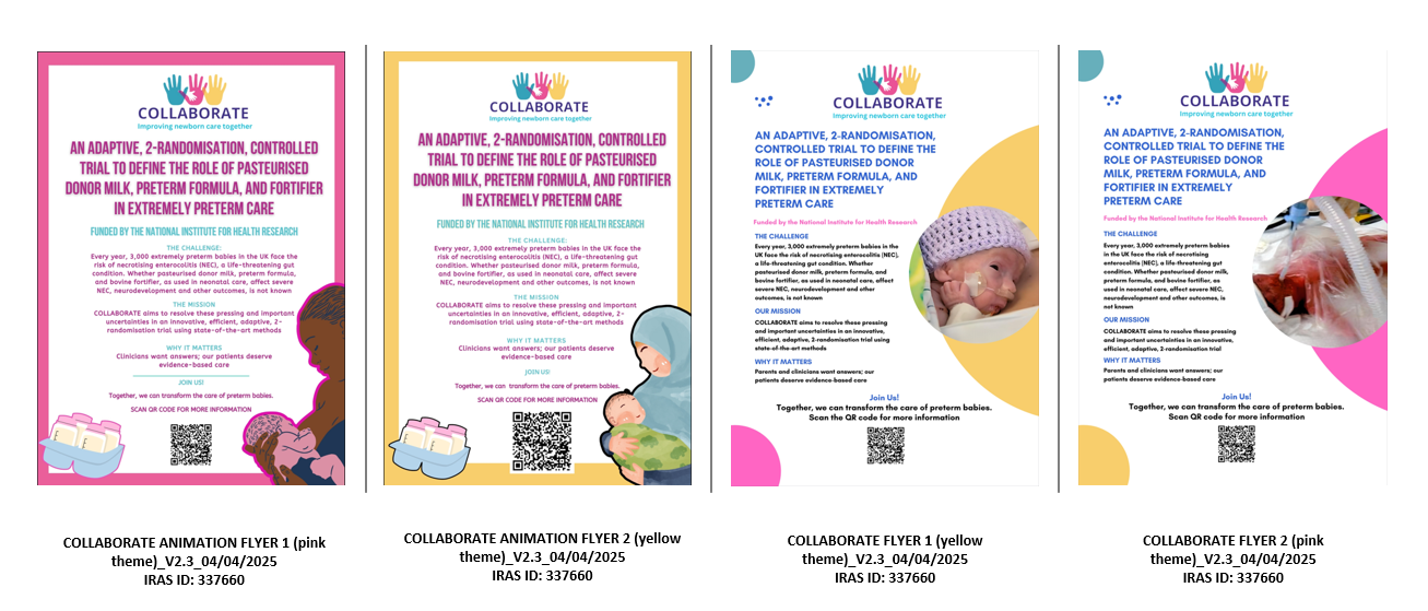 COLLABORATE is funded by the National Institute for Health Research and sponsored by Imperial College London. COLLABORATE is a National Neonatal Research Database enabled study and will be delivered by the Imperial Clinical Trials Unit
