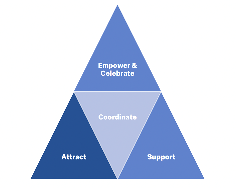 Attract: Develop recruitment, mentoring and support approaches that serve to attract, appoint and retain a wider diversity of staff and students.