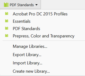 4. This will open a menu below (fig.1) and select the PDF Standards library (fig.2):