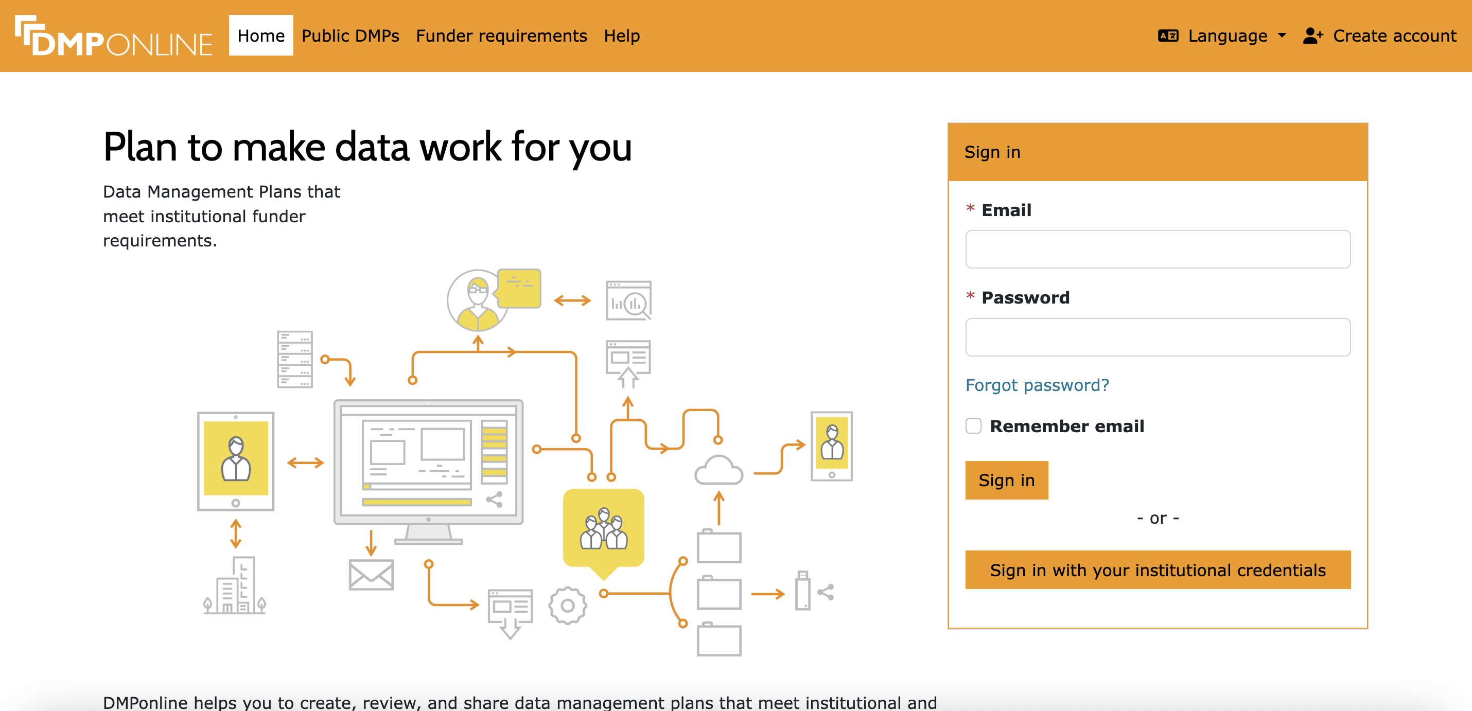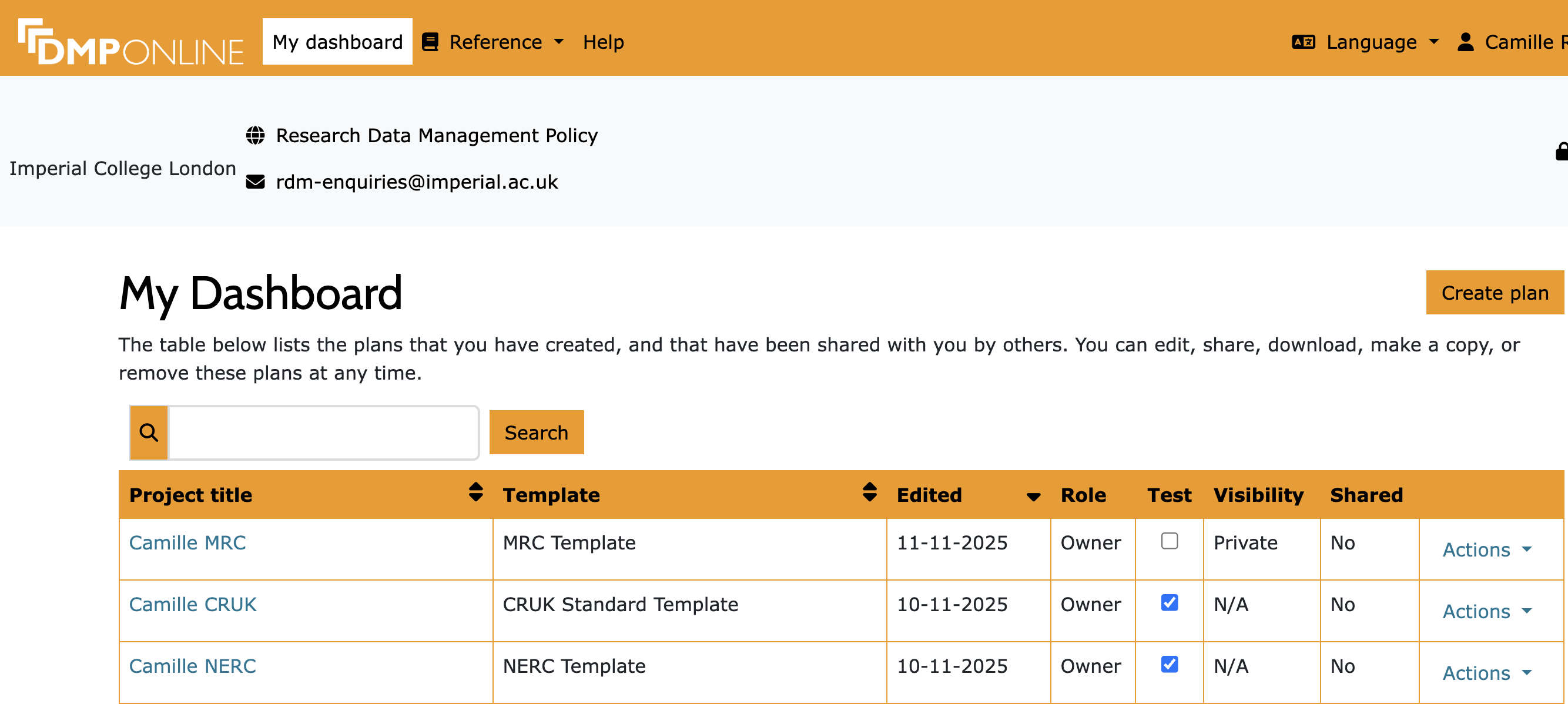 The best way to get started writing a data management plan (DMP) is to begin with a suitable template. We recommend using DMPonline an online tool from the Digital Curation Centre (DCC) which provides templates for all UK research funders who require a plan, as well as Imperial-specific templates and guidance.