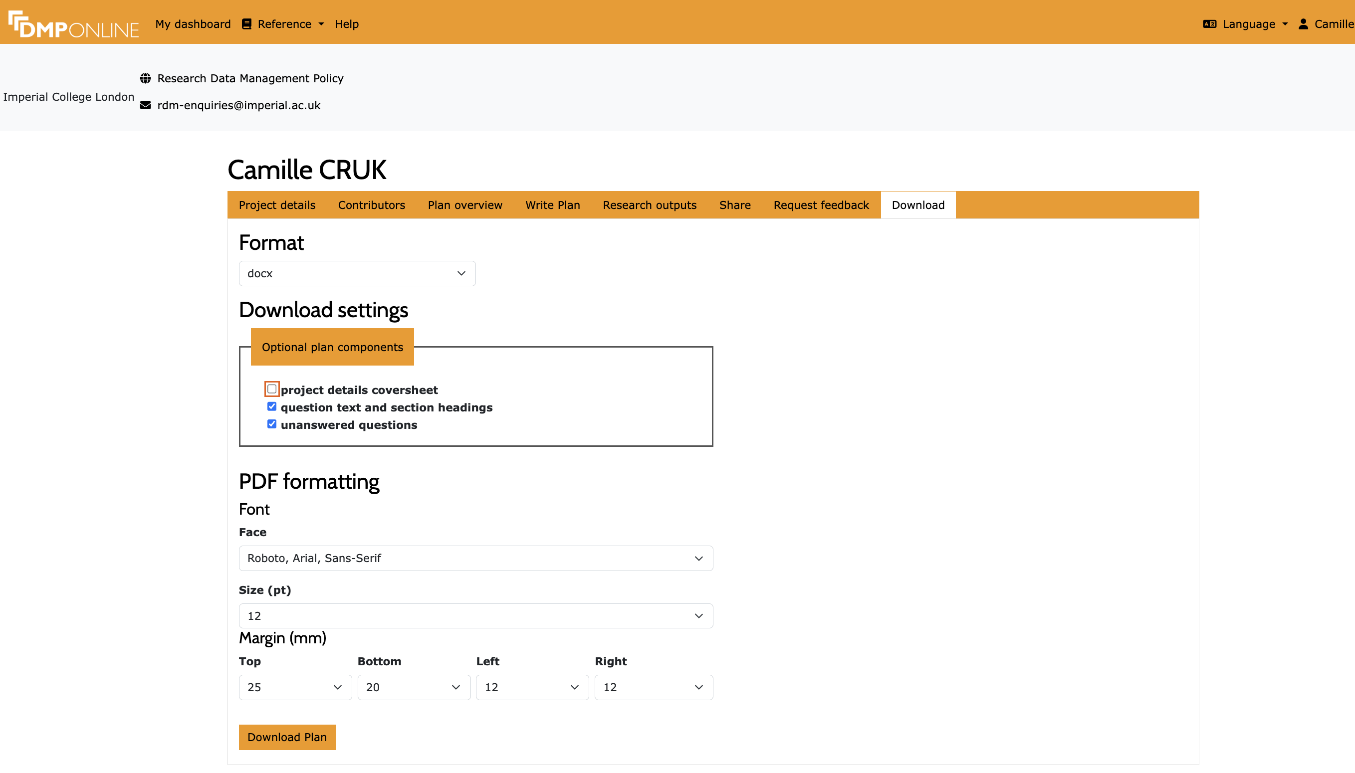 - You can now start to write your plan. Expand the boxes to add content and see the guidance provided by the funder, Imperial, and Digital Curation Centre